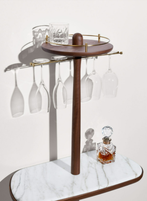 The singularity of this mirror is base don its caring proportions; a hand-made natural walnut shelf combines the softness lines of the mirror.