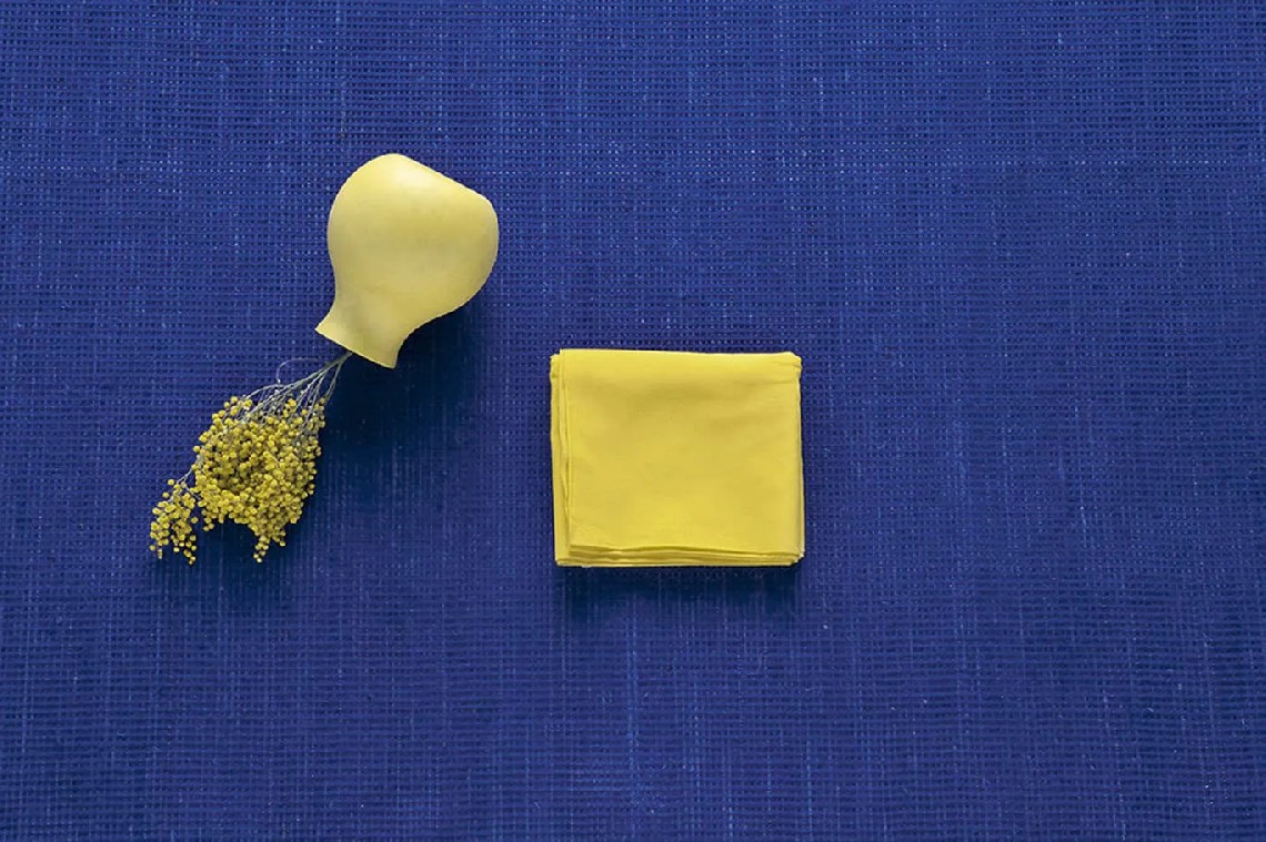 Five models hand-loomed in India with surprising colors: natural, black, indigo, purple and yellow.