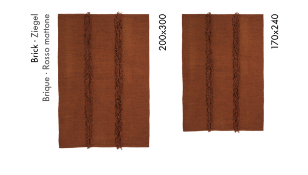 Create your own rug: choosing between two sizes, four colours, and four different finishes. You can contrast seams, add different types of fringes or opt for colourful stitches. Infinite results are possible; each detail makes a difference, ensuring your rug is unique.