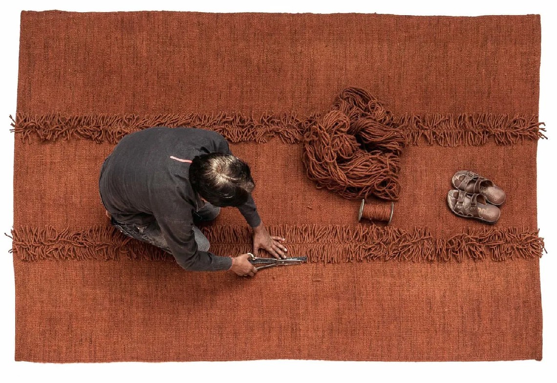 Create your own rug: choosing between two sizes, four colours, and four different finishes. You can contrast seams, add different types of fringes or opt for colourful stitches. Infinite results are possible; each detail makes a difference, ensuring your rug is unique.