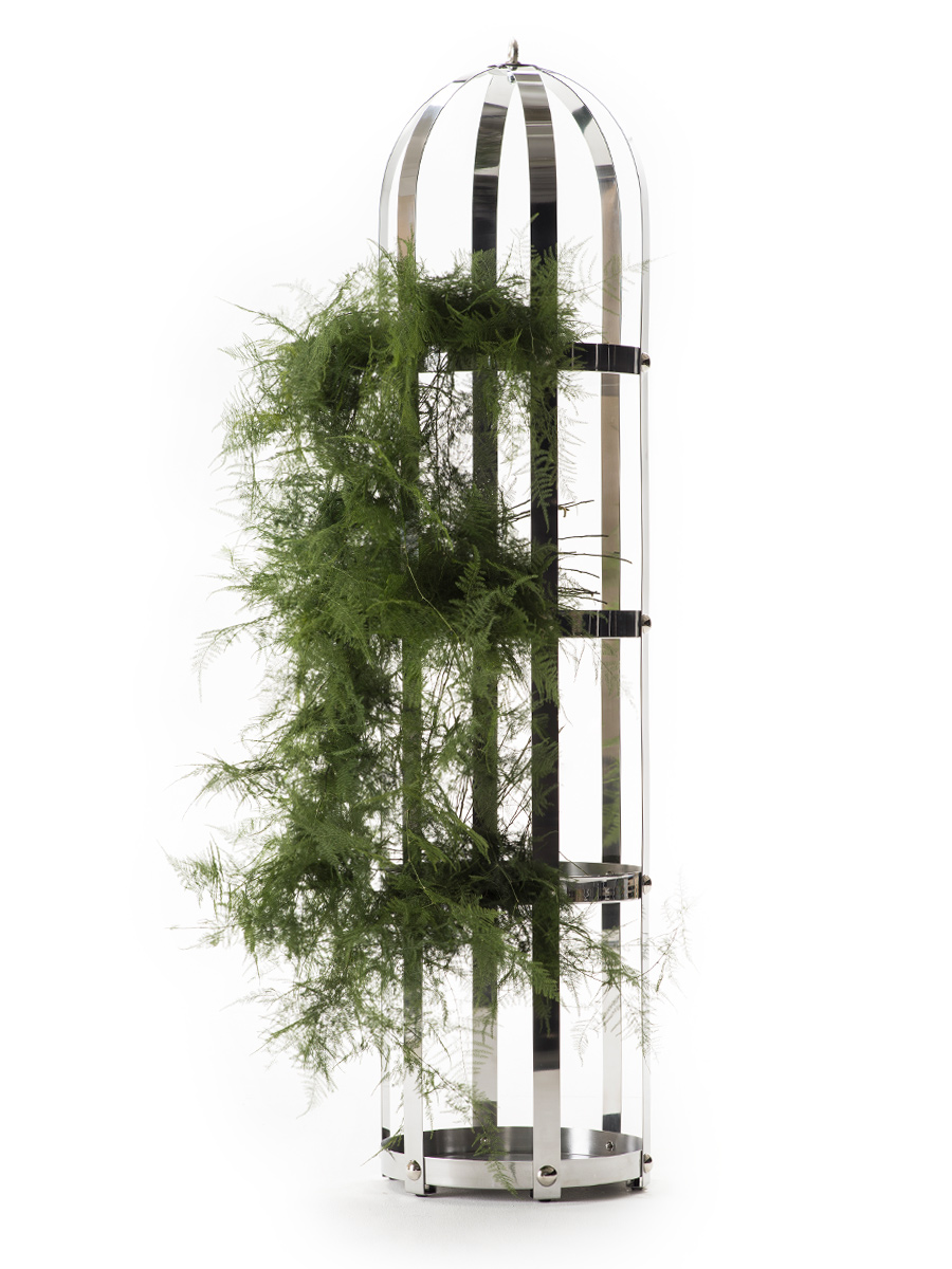 La Gabbia, il contenitore di Lapo Ciatti, realizzata in metallo e alluminio e impreziosita da 24 borchie lucide è un elemento scultoreo dal grande impatto scenografico. Parte di #FollowYourRoots 2015 è un complemento dal forte carattere e significati simbolici che rimandano a quel Medioevo a cui tutta la collezione si ispira