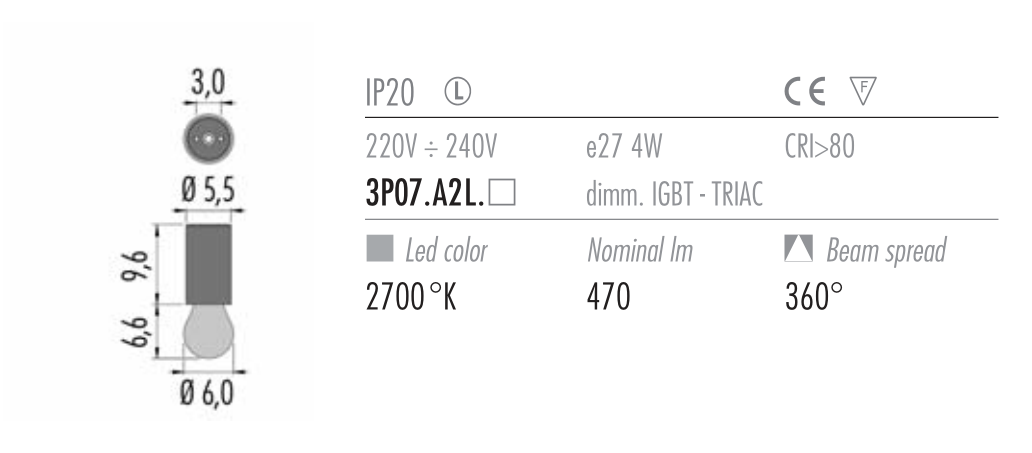 POP P07 ?5,5 BULB PARETEPLAFONE壁燈