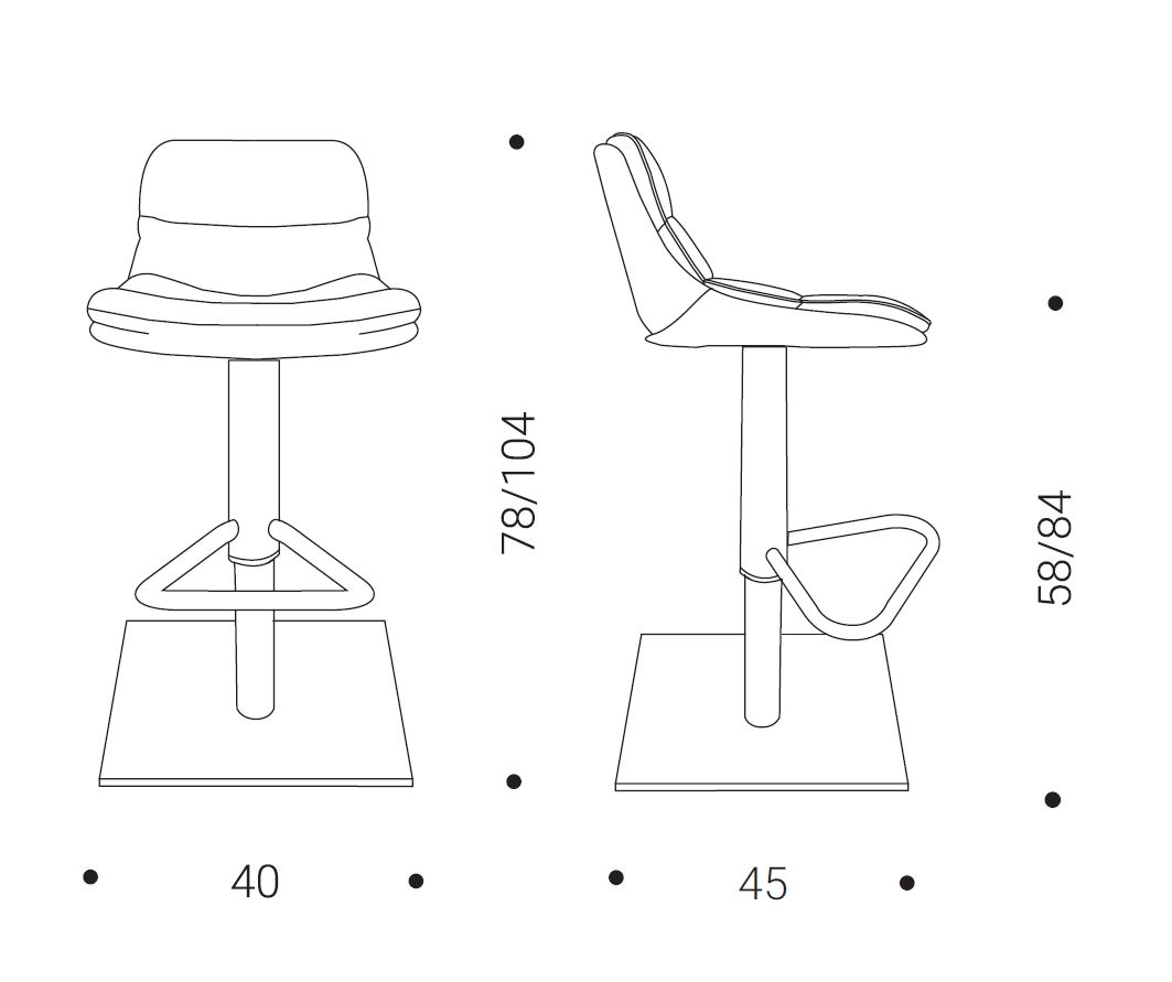 Sgabello regolabile con pistone a gas e seduta imbottita, rivestita in pelle o velvet, dall’effetto cosy con cuciture che fanno trasparire il loro morbido rivestimento. Sgabello comodo ed avvolgente realizzato per un living caldo e moderno.