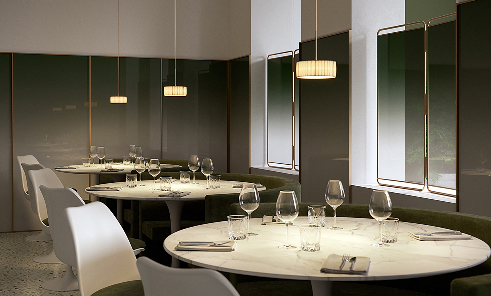 Lampada da sospensione, tavolo e parete (disponibile anche a incasso) con testa in pressofusione di alluminio. Diffusore in materiale acrilico con perimetro luminoso. Braccio conico decentrato, testa orientabile e comando Step DIM a 5 regolazioni di intensità luminosa caratterizzano le versioni da tavolo e parete, quest’ultima con snodo anche alla base, per una maggiore flessibilità nel posizionamento. La versione a sospensione, testa fissa e con tige centrale è disponibile in versione a emissione diretta e indiretta. Disponibile paralume in tessuto color avorio “Bella vestita” disegnato da Matteo Thun, da ordinare separatamente. Bianco, nero, titanio, bronzo e ottone satinato le finiture disponibili.