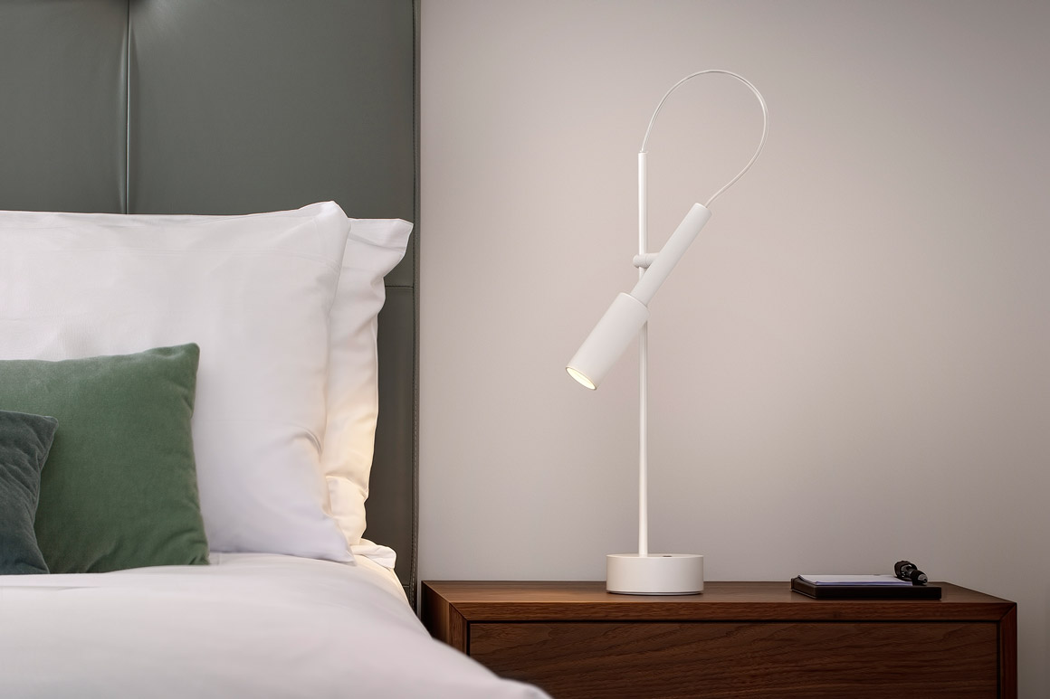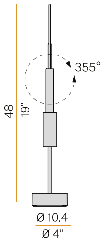 Lampada a sospensione, tavolo, parete/soffitto (disponibile anche a incasso) e terra in alluminio tornito con accensione ON-OFF e cavo trasparente. Tubino parete/soffitto è particolarmente adatta in applicazione alla testata del letto, sia in ambito residenziale che hospitality. Nella versione terra le sorgenti raddoppiano, il posizionamento sulla struttura a stelo è pensato per consentirne l’utilizzo anche come lampada da lettura. La versione tavolo è disponibile nella variante Tubino Plus con comando Step DIM a 5 regolazioni dell’intensità luminosa in finitura champagne, bronzo o titanio con cavo di alimentazione tra la testa e la struttura in tessuto colorato.