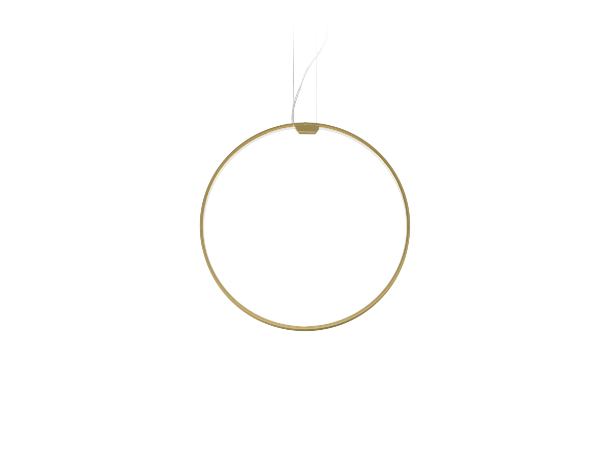 Lampada a sospensione verticale in alluminio estruso curvato con schermo in policarbonato opale. Emissione interna attraverso modulo LED e tecnologia DALI/Push DIM di serie su tutte le versioni inserita nel rosone. Anello rifinito con vernice poliacrilica color bianco, nero, titanio, bronzo e ottone satinato. Possibili colori custom su richiesta. Disponibilità di rosone per installazioni singole e rosoni per composizioni multiple da ordinare separatamente. Ideale per uffici, hall, zone living, grandi spazi, anche in abbinamento con Zero Round Acoustic e Arena Acoustic.