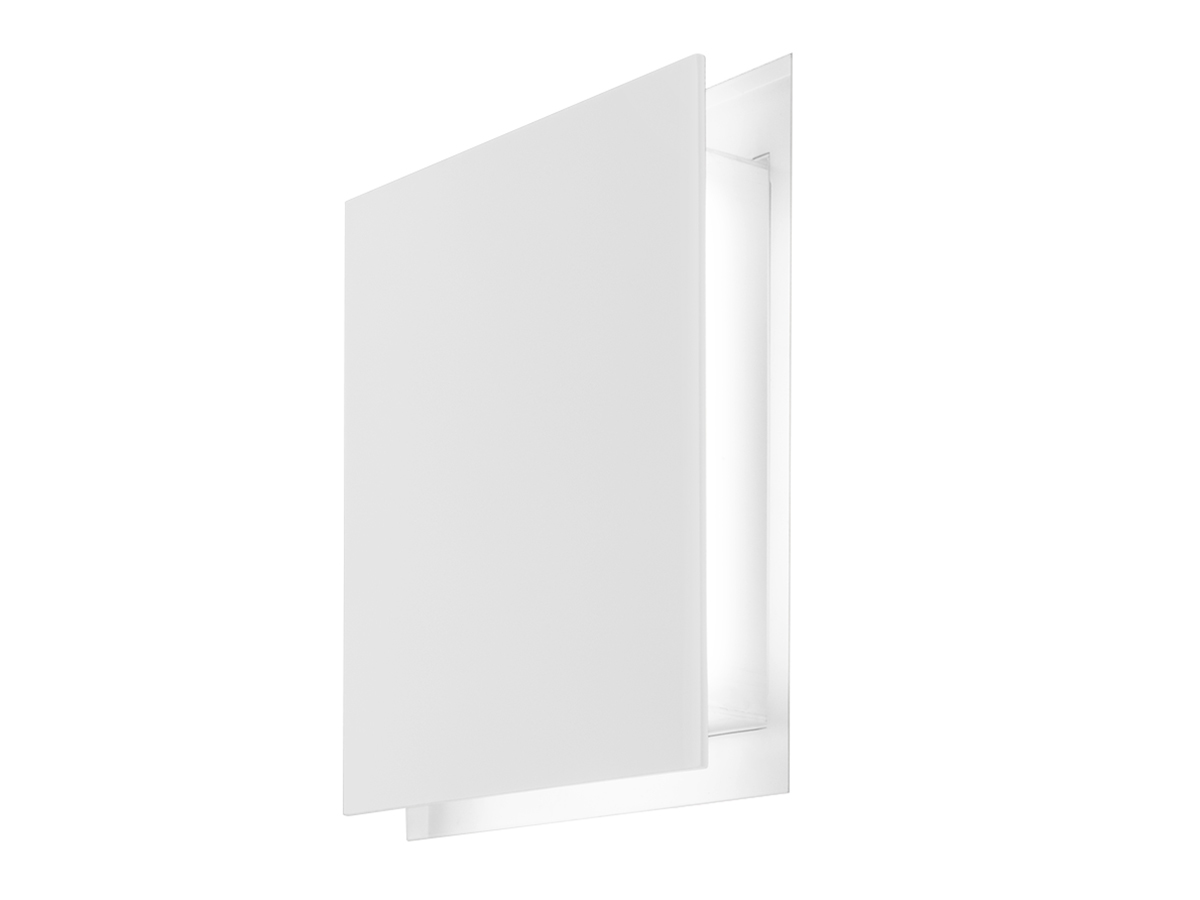 Lampada ad incasso da parete a scomparsa in metallo con meccanismo di apertura e chiusura a pressione. Sorgente luminosa composta da modulo LED a luce indiretta e driver bi-level integrato nell’apparecchio per diminuire il consumo e il flusso luminoso in modalità di chiusura, per ottenere un perimetro luminoso. Finitura in vernice poliacrilica bianca. Ideale per camere da letto, living e per creare composizioni d’effetto su grandi pareti.