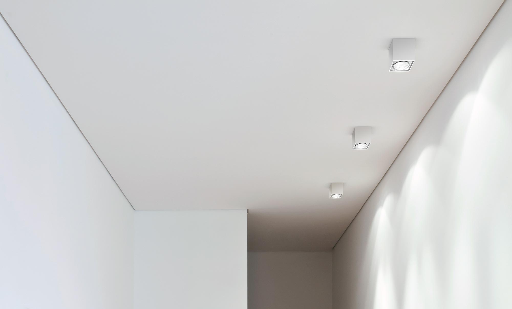 Lampade LED da sospensione e soffitto in tubo quadro di alluminio nei colori: bianco, nero, bronzo, ottone satinato e foglia oro.