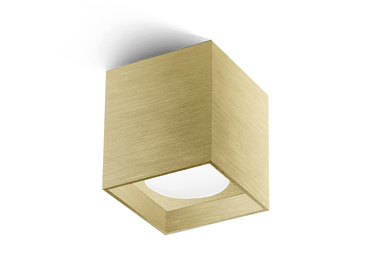 Lampade LED da sospensione e soffitto in tubo quadro di alluminio nei colori: bianco, nero, bronzo, ottone satinato e foglia oro.