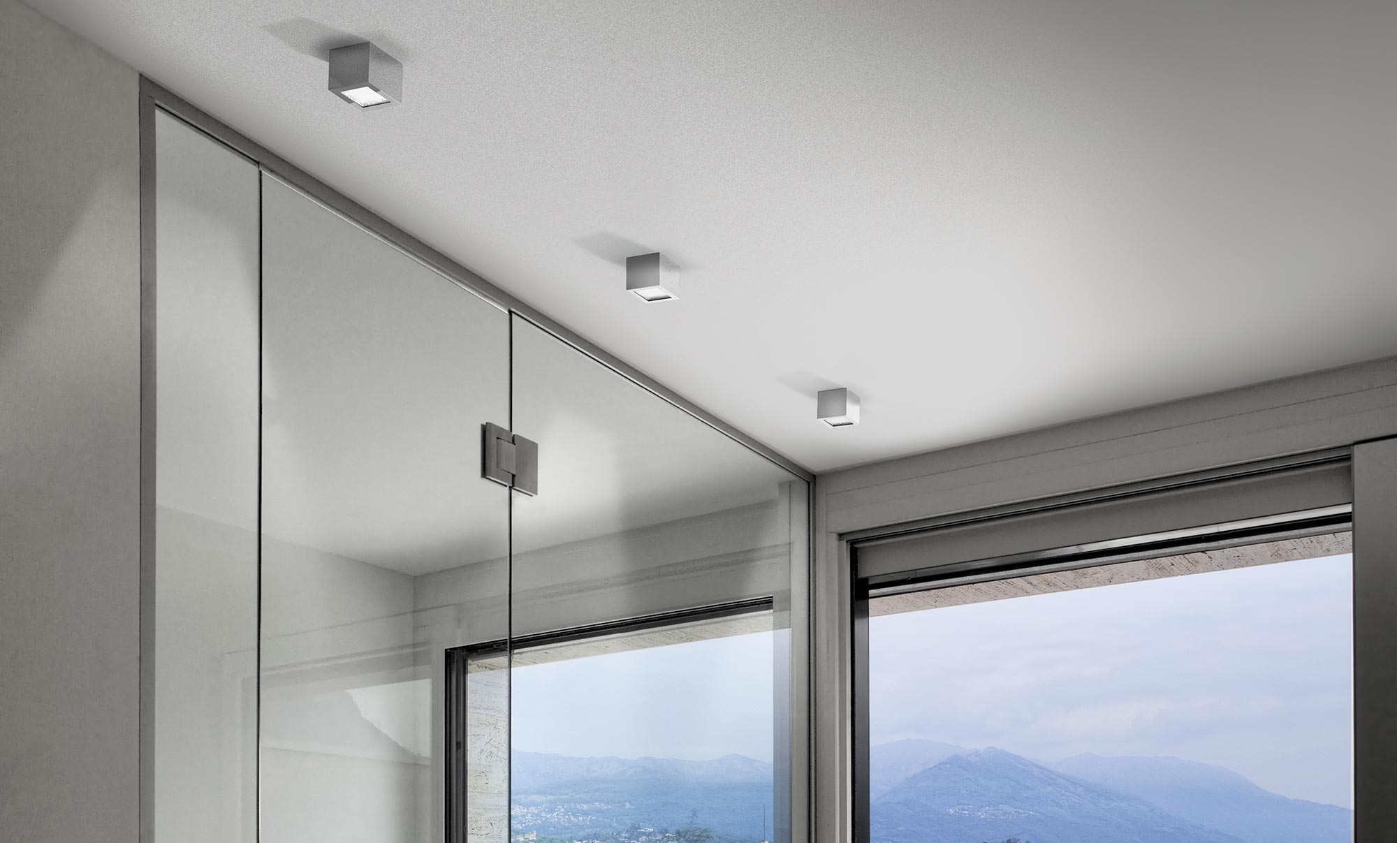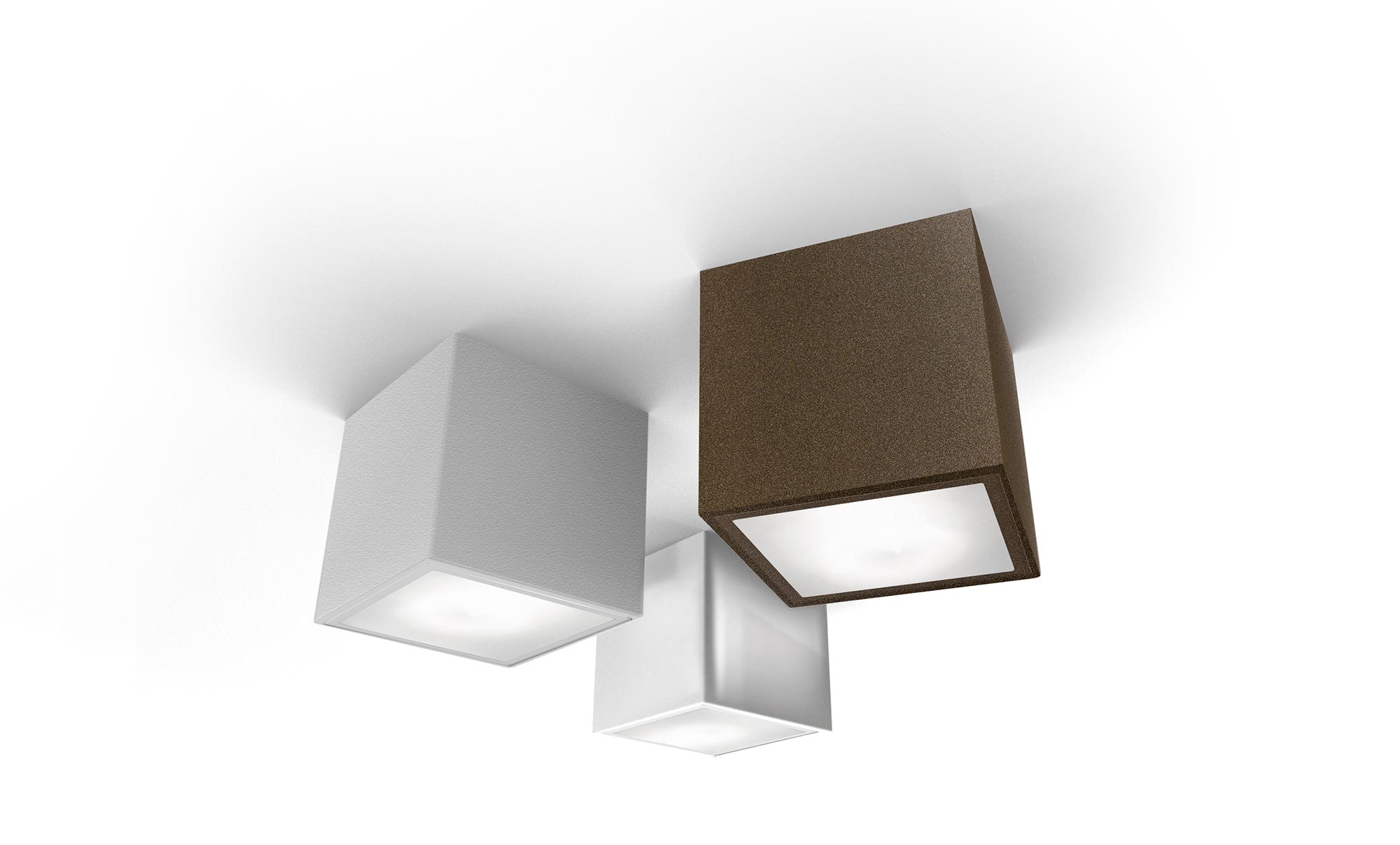 Lampada LED da parete/soffitto in alluminio verniciato poliacrilico bianco, bronzo, ottone satinato, nero e vetro satinato.