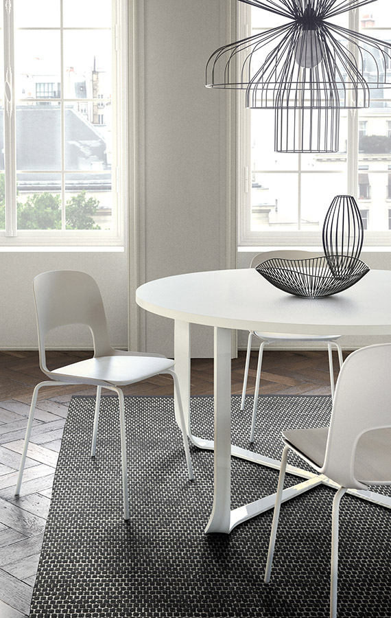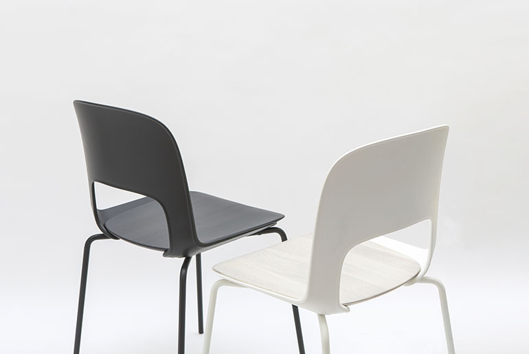 Cora is the final result of an aesthetic research exploring the differences between wood, metal and plastic in one simple object: the chair. Wood renders warmth and solidity to the seat, plastic confers elasticity to the backrest while metal grants visual lightness to the structure. Cora is the result of a challenging work carried out together with the injection moulding engineers aiming to create the perfect dialogue between different materials respectful of the structure stress regulations. the result is a strong, light, manageable chair, of compact size, that uses its all materials to best advantage.