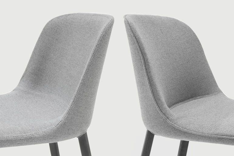 The family of Esse upholstered chairs designed for Pianca consists of two armchairs, one of which has a solid base, and of one chair. “Esse” therefore recalls an iconic, continuous sign, the “S”, visible in the seat profile, and also the idea of femininity which makes the object welcoming, curvy and harmoniously designed. The polyurethane shell is covered in fabric.