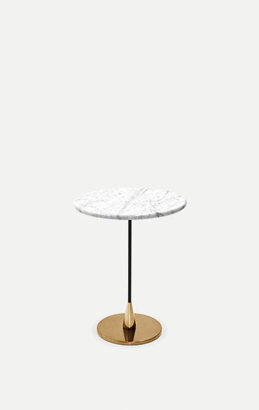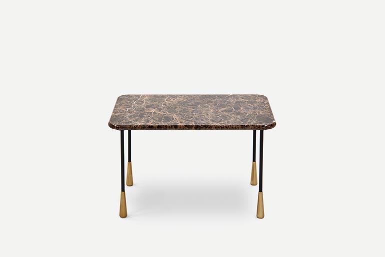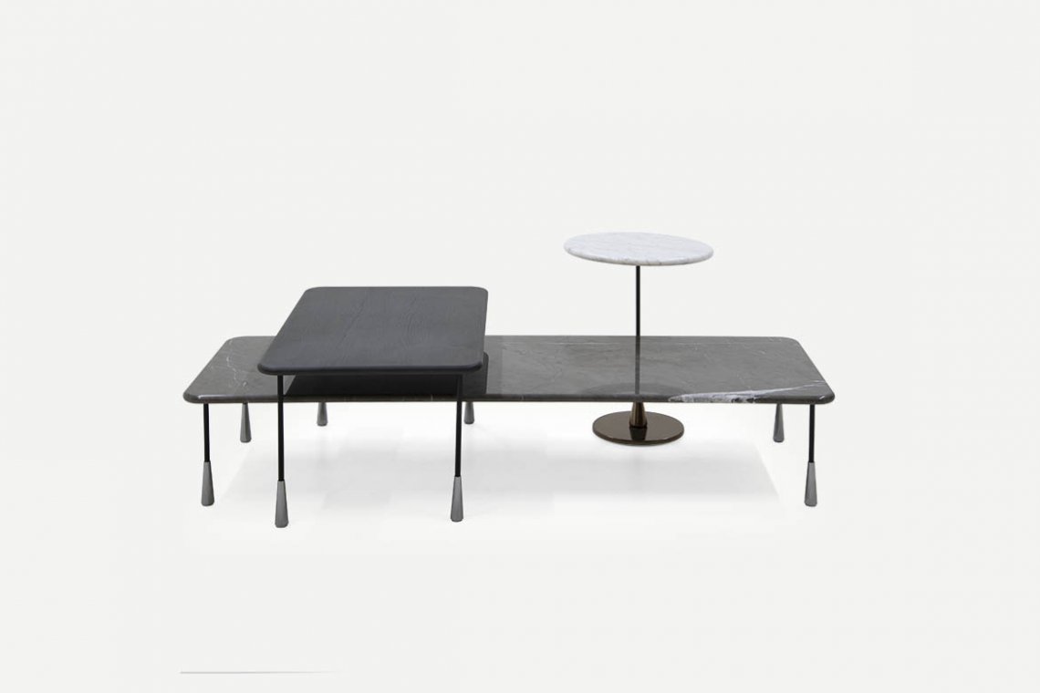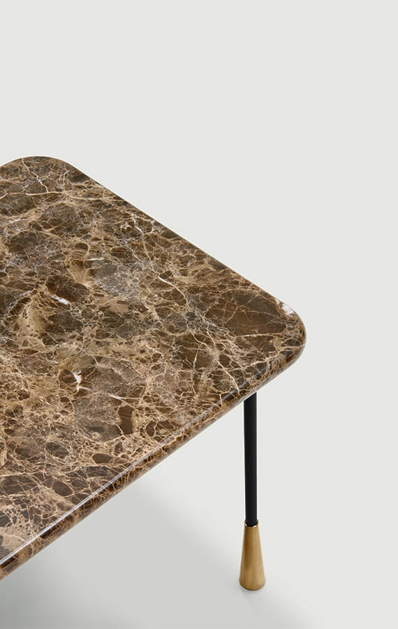 The inspiration behind the eccentric and original detail that is the common denominator across the Baio series can be traced back to Iceland. It was the iconic image of a herd of horses that gave the designers the idea of fitting the tables’ legs with a hoof in a tapering, elongated shape. This detail gives the design an out-of-the-box look and grounds the piece in a more evident way. The resulting compositional balance is refined and delicate. In the version with the round top, the single central leg is fastened to a circular supporting plate, which quietly gives the whole piece stability. Another of Baio’s distinctive features is the considerable variety of shapes and sizes available, further supplemented with ample scope for customization with a choice of materials, colours and finishes.