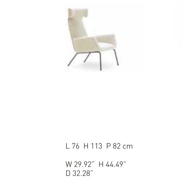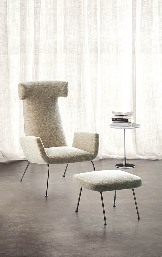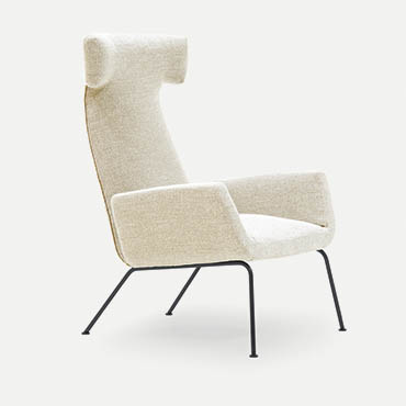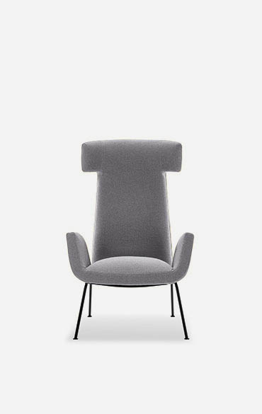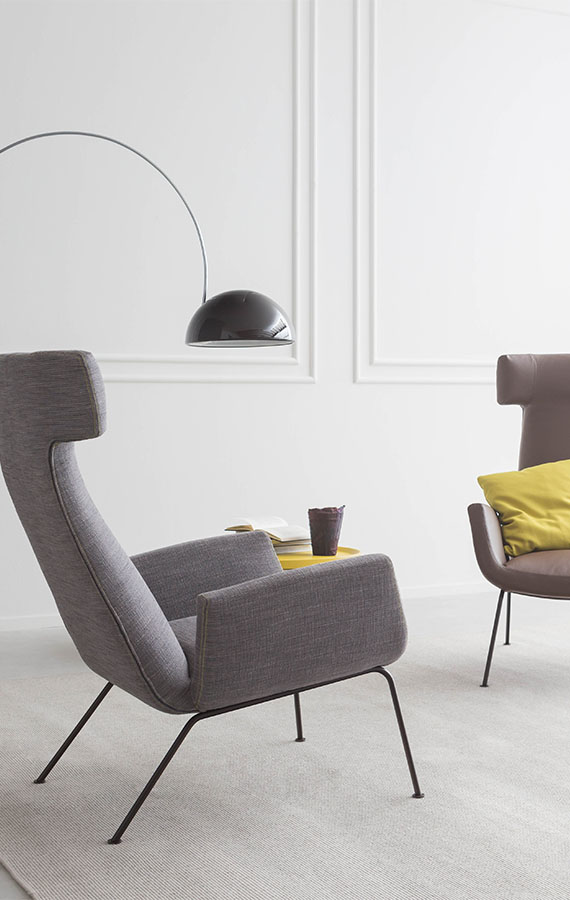 An armchair where Scandinavian and Italian design meet and blend in. The generous, comfortable upholstered seat and the slim metal structure provide a pleasant effect thanks to the well balanced proportions. The result is a versatile, sleek design object suitable for any interior environment.