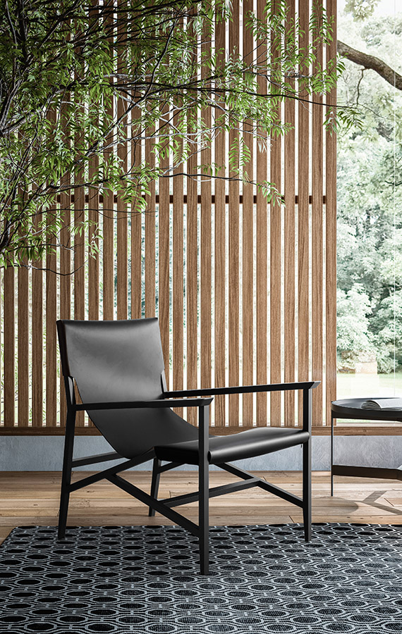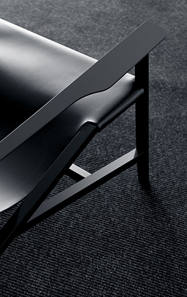 Clear, legible, contemporary lines: Isotta pares seating back to the bare essentials, doing away with volume and padding, but not comfort. A strip of belt leather, available in white or black, moulds individually to the shape and posture of the body, attaching to the frame just at the two ends. The base is made entirely from wood, available in natural ash, withe or black matt lacquered finish. The shaped legs are connected together in a linear geometric pattern, a stylish solution designed to keep the chair stable.