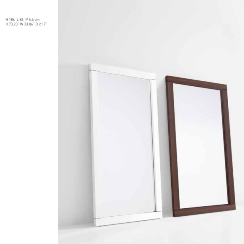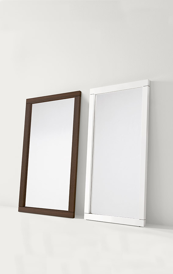 Mirror with surrounding frame available in wood finish or matt lacquered bianco for the utmost freedom of interior décor combinations.