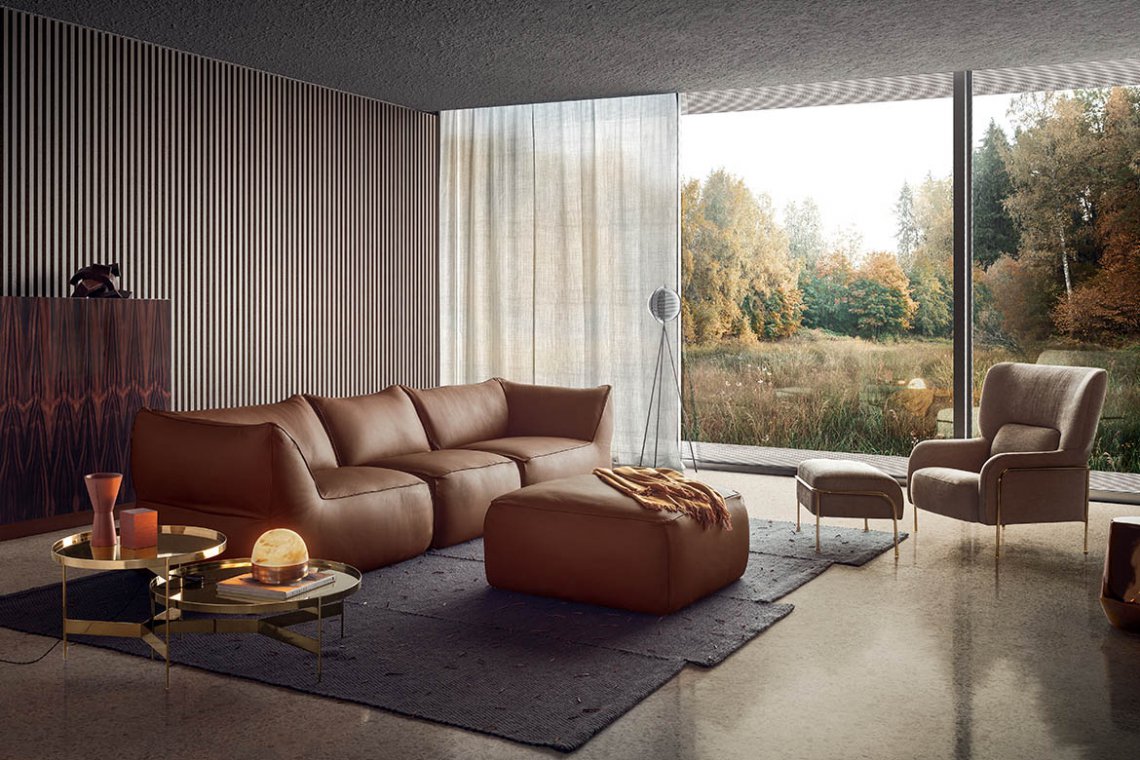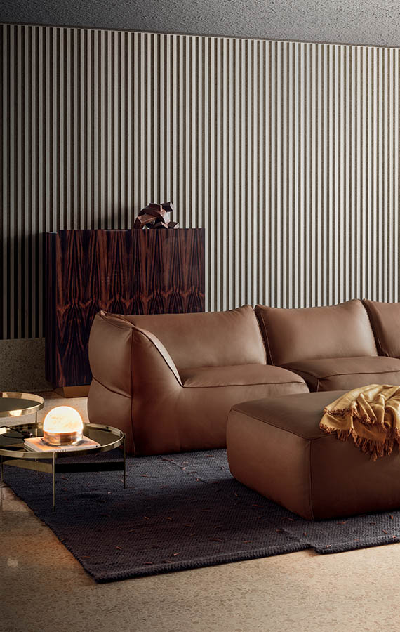 A playful attitude that is both modern and versatile: Eden breaks away from tradition. Padded all over with polyurethane foam in different density zones, it offers sturdy yet comfortable seating. Since there are no stiff frames, this sofa is light and dynamic. The modules simply stay together by using zip fasteners and straps while a technical fabric base ensures excellent adherence to the floor. A thick seam runs along the edges of the coverings, setting off the soft volumes of this model. Linear and side modules as well as an armchair, a chaise longue and an ottoman are all available.