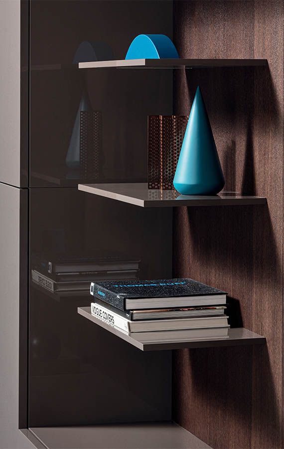 Simplifying everyday movements, creating contours that command order and harmony: Spazio is the very essence of functionality. With close attention to details and a love of textures, it offers a range of modules, sizes and finishes unrivalled in their variety and flexibility. Spazio is ideal for every room in the home and has something to satisfy the tastes and requirements of everyone. The latest additions include marbled glass, mirror glass, backlit shelves, back panels in materico marble, new metal finishes for handles and the luxurious leather model.