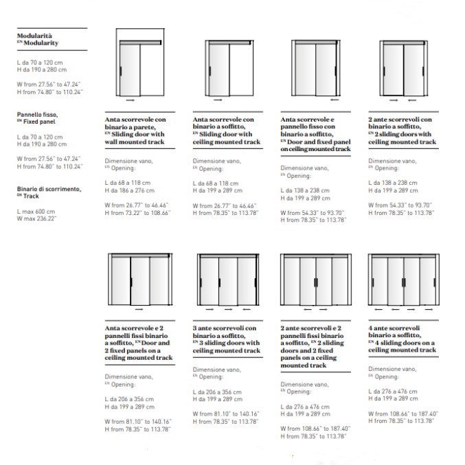 The major features of the sliding door VISTA are the total lack of frames or the very thin perimetral profile and it’s modularity to the centimeter, in order to separate or join spaces.