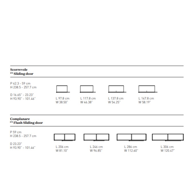 A refined design with a stylish, eccentric appeal. The geometric door decor offers a juxtaposition of gloss and matt glass surfaces. Various-sized rectangles in different proportions stem from a modern artistic language. The handle has a strong graphic impact, cutting across the doors in a horizontal line that enhances the beauty of the composition. Available matt lacquered or in wood, it is recessed inside the panel of sliding or flush sliding doors.