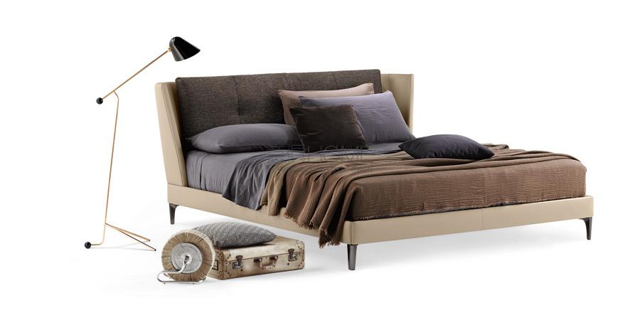 Bretagne床的縱向床梁式基座使用杉木條,床腳板使用楊木膠合板,填充聚氨酯泡沫。槍管色鋁支腳。床頭框架使用楊木、櫸木和北美鵝掌楸實(shí)木以及樺木膠合板。包墊中使用聚氨酯泡沫和聚酯棉。支撐靠墊使用聚氨酯泡沫和聚酯棉。通過拉鏈和粘扣條與床頭連接。Bretagne床外表使用典雅的裝飾效果,將床架和床頭上的Pelle Frau?軟皮與靠墊的可拆洗布藝相結(jié)合。此外,還有完全覆蓋軟皮的版本。