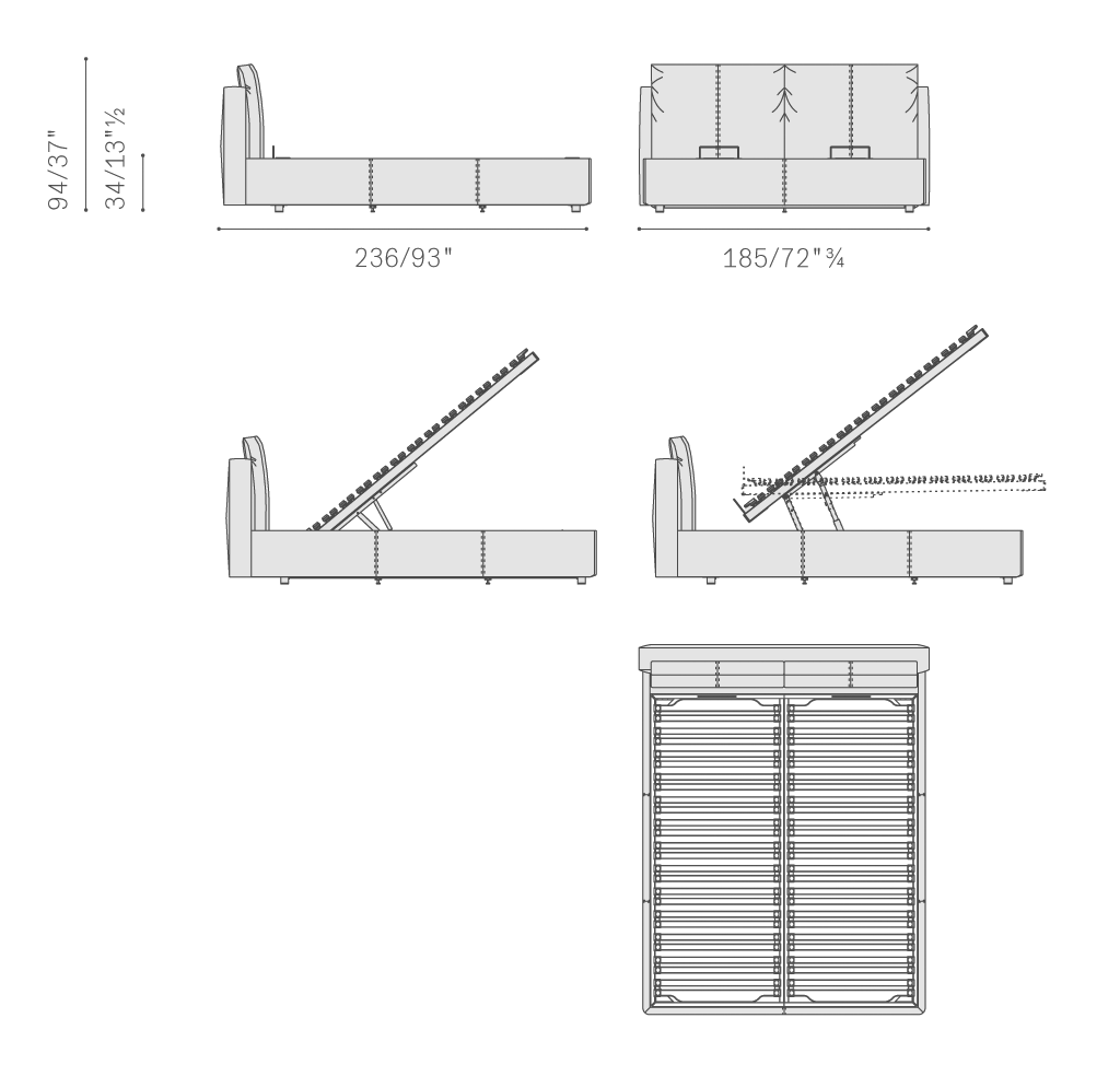 Massimosistema Bed床得名于同名沙發,重現其寬大豐富的幾何形狀,重新刻畫靠墊和后側之間的重疊游戲。以珍貴絎縫線裝飾Pelle Frau?軟皮覆面。包容而不拘一格,Massimosistema Bed還可提供配備一只大容積收納倉的版本。