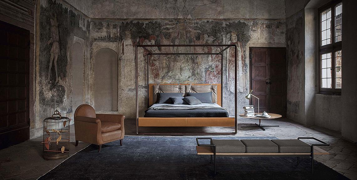 Roberto Lazzeroni在設計Volare時展現了經典天篷床空靈而輕盈的外形。精準的設計為重要結構賦予形狀,這一結構采用奢華的加工和天然材料,同時低調而內斂。Volare床是舒適和休息的綠洲,完美適合房間中央和寬敞空間。它具有熱情包容的特質,體現在其顏色、包墊以及軟皮、皮革、木材、布藝的搭配中。