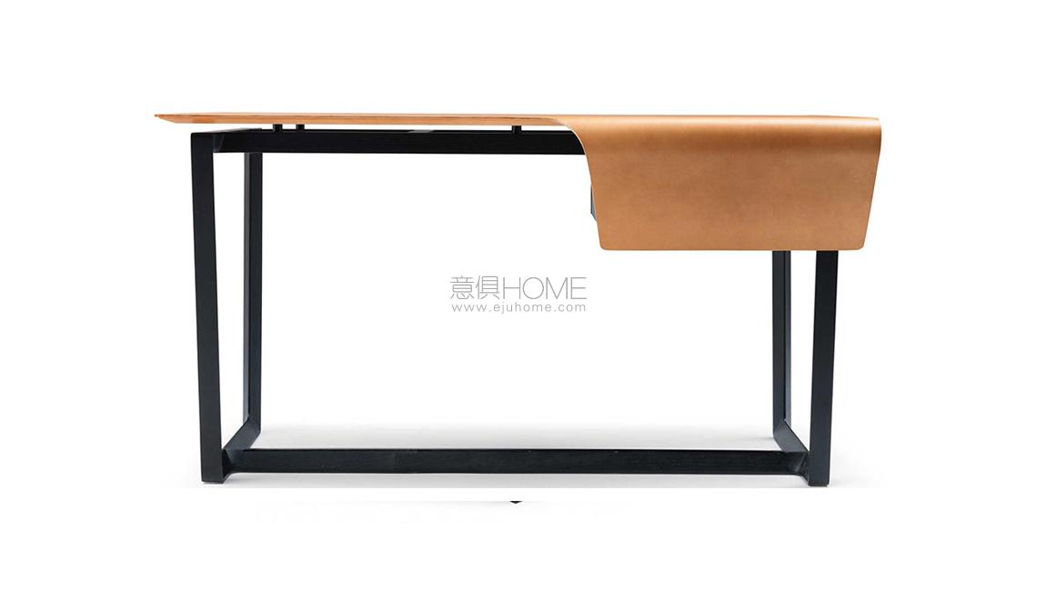 Fred寫字臺結構使用雞翅木色或摩卡色梣木實木,具有三角形截面,彰顯輕盈感。構成寫字臺的抽屜也使用相同的材料和表面處理,安裝在金屬導軌上,使用緩沖開閉系統。桌面使用來自整張牛皮的Cuoio Saddle Extra皮革,厚度4毫米,無切割或縫線。邊緣剪裁整齊,染色并涂有保護蠟。金屬配件采用槍管色電鍍處理,涂有保護漆料。