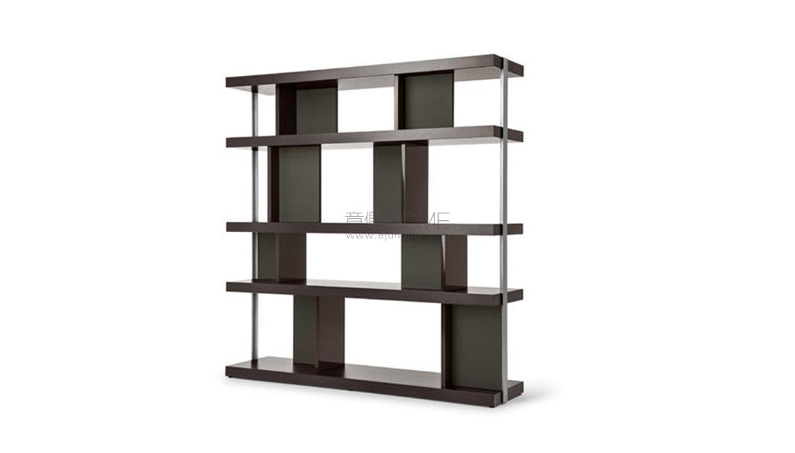 Jobs Bookcase系列源自Rodolfo Dordoni對新科技相關行為發展的專注研究,以及材料的精心篩選:軟皮、拋光和啞光木材鋼質軋光結構,以穩重精簡的色調裝飾不同輪廓,并定義全新工作區域。Jobs Bookcase低柜和高柜既是收納柜,也是書柜,外露隔槽、架板和帶門板的隔槽組合而成。既可以沿墻壁擺放,也可以置于房間中央,還可以用于界定、劃分、組織空間。依據垂直元素和隔斷的布置,分為兩種類型,在沿墻壁擺放的版本中,均更加靠后,有助于優化空間。