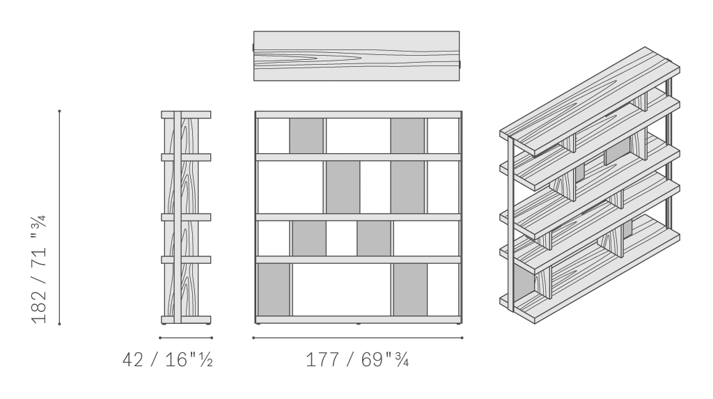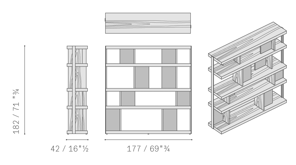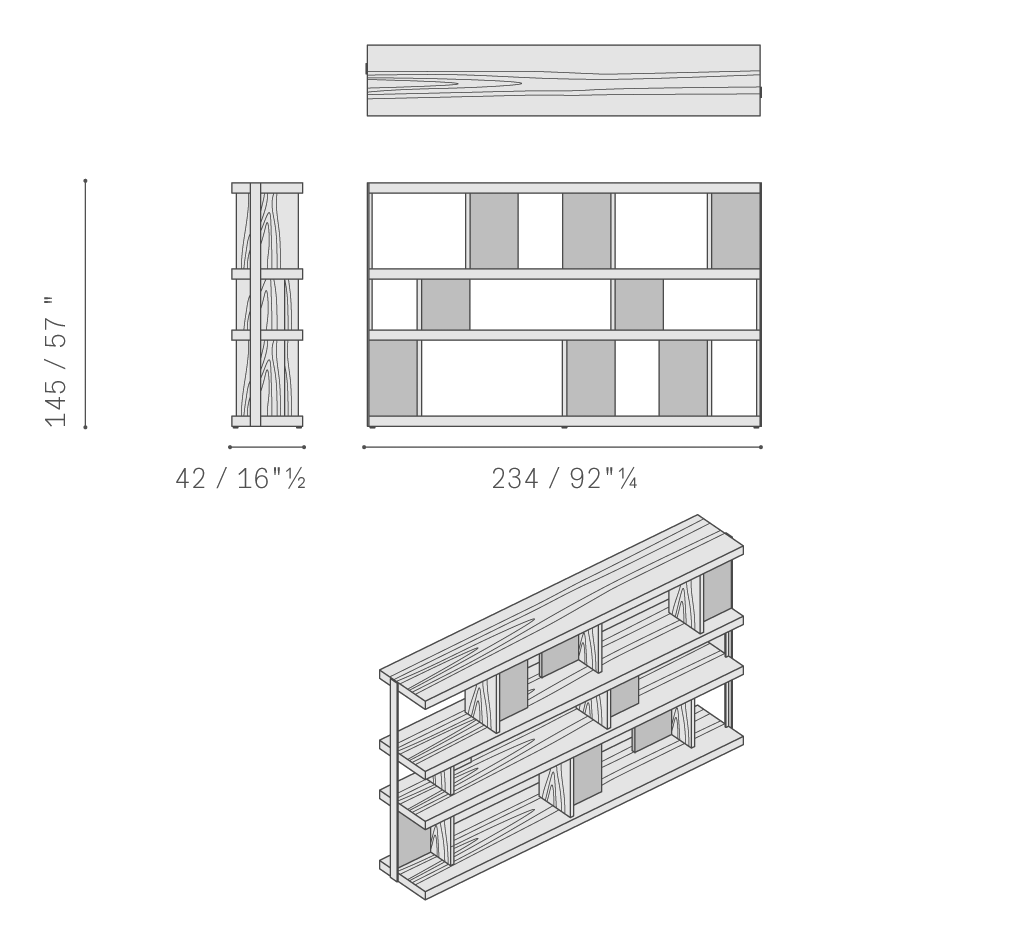 垂直支柱使用汞色鋼材,采用特色T型截面,是Jobs各款家具的特色所在。中密度纖維板小門板覆蓋Pelle Frau?軟皮。所有其他元素、架板、隔槽和背板也使用相同的材料:汞色或煙草色橡木貼面與典雅的拋光和啞光表面交替。Jobs低柜結構采用中密度木質纖維板,鑲貼汞色或煙草色拋光表面處理橡木,頂板則使用啞光表面處理。底座使用汞色噴漆軋光鋼,搭配可調節底腳和中心連接橫撐,黑色噴漆,采用防劃表面處理。Jobs Bookcase高柜和低柜后側配有可翻轉門板,門后是一個內部小隔槽,用于接出纜線,通過沿整個表面橫向排列的溝槽從地板處一直延伸到頂板。