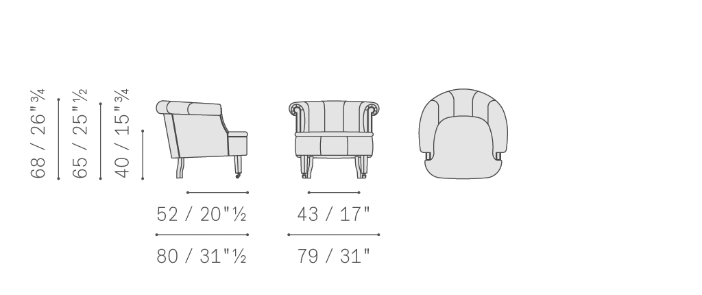 Club小扶手椅通過(guò)手工精心縫線豐富靠背和坐墊細(xì)節(jié)。彈簧結(jié)構(gòu)使用手編雙錐形彈簧,固定在黃麻帶上。結(jié)構(gòu)采用陳年櫸木。支腳使用深胡桃木色櫸木。前側(cè)支腳安裝輪子,使用槍管色表面處理。表面覆蓋Pelle Frau?軟皮或布藝。