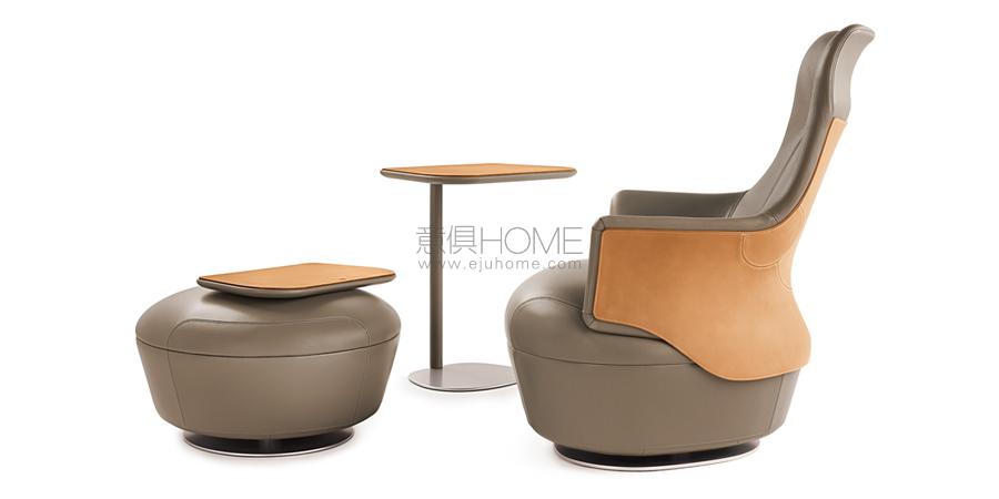 Assaya扶手椅的靠背及扶手結(jié)構(gòu)由一個統(tǒng)一的主體構(gòu)成,使用硬質(zhì)聚氨酯,填充聚氨酯泡沫和棉絮。座墊采用陳年櫸木,配有松緊帶。外部包覆Saddle Extra皮革,內(nèi)部包覆Pelle Frau?軟皮或布藝。皮革表面的四周裝飾珍貴的對比色明線。Assaya圓沙發(fā)凳完全包覆布藝或Pelle Frau?軟皮。咖啡桌和多功能桌分別采用樺木和楊木膠合板,下表面少量填充聚氨酯泡沫。在這里,皮革表面的四周也裝飾珍貴的對比色明線。