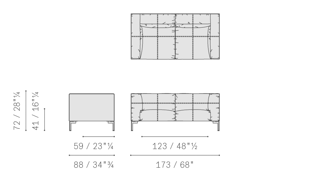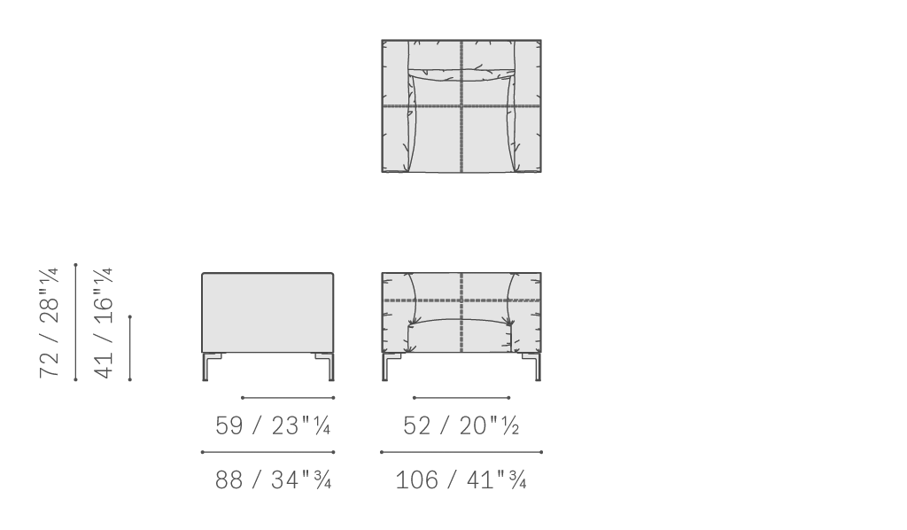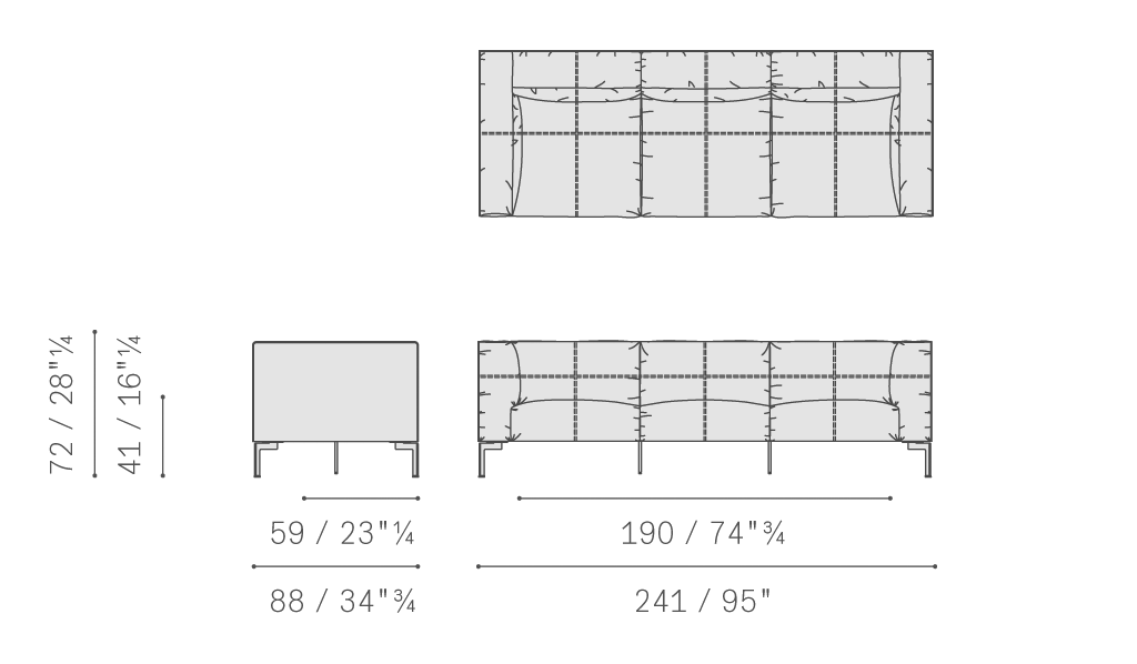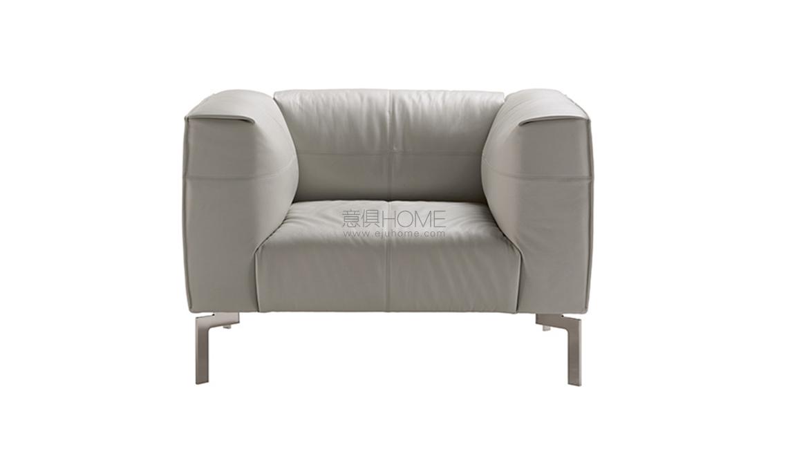 扶手和靠背外部覆蓋Saddle Extra硬皮,采用工藝精湛的齊整剪裁手法,直接縫合在內部Pelle Frau?軟皮覆層上。Bosforo沙發和扶手椅也有完全覆蓋Pelle Frau?軟皮的款式。其結構使用楊木和櫸木實木以及樺木膠合板貼面。座墊彈簧結構使用松緊帶,而包墊則填充聚氨酯泡沫和聚酯棉。靠背和扶手靠墊填充鵝絨和聚酯絮絨,添加聚氨酯泡沫嵌塊。鍍釕鋼制支腳。