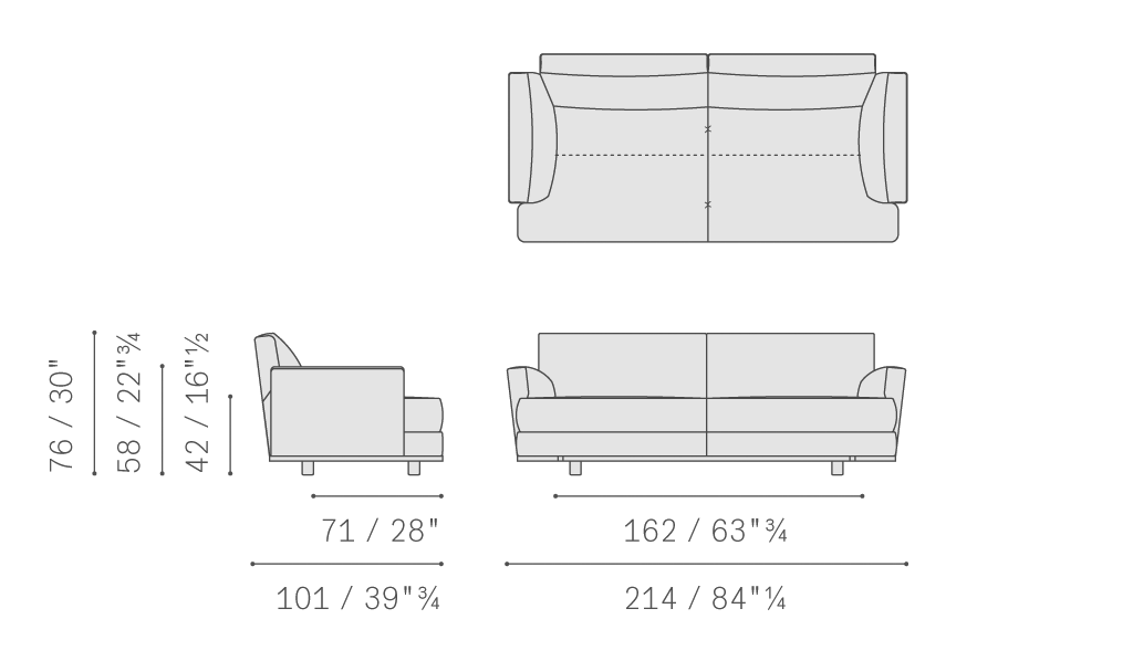 Come Together沙發系統表面覆蓋Pelle Frau?皮革或布藝。為了強調團結感,沙發整個下沿可點綴一條Cuoio Saddle或Cuoio Saddle Extra鞣制皮條,裝飾袢帶,好似腰帶和小皮具。無皮條版本突出設計的輕盈感。針腳在扶手表面塑造出細膩和諧的圖案。支腳可以選擇黑色陽極處理鋁制圓柱結構,或者鍍色磨砂鋼片狀結構,后者也可使用鍍釕表面處理。
