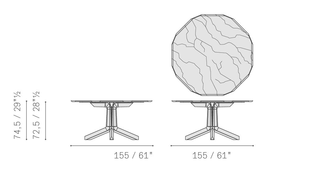 摩卡色或雞翅木色白蠟?zāi)緦?shí)木支撐具有幾何雕塑的效果。相反,無論是圓形版本還是長方形版本,頂面均彎曲而柔軟。Othello桌臺的獨(dú)到特點(diǎn)在于其木制結(jié)構(gòu),邊緣截面呈三角形,與尖角相結(jié)合,沿臺面四周,呼應(yīng)鉆石切割工藝。Poltrona Frau為頂面提供兩種材質(zhì)款式選擇。煙熏色水晶玻璃臺面輕盈且半透明,彰顯支撐構(gòu)造的堅(jiān)實(shí)。帕斯高灰大理石是極為珍貴的品種,細(xì)膩而豐富的紋理令人無法移開視線,在自然光下展露透光和幾乎透明的區(qū)域。或者,也可以使用同樣珍貴的卡拉卡塔金色大理石。水晶玻璃版本的Othello桌臺搭配拉絲不銹鋼外露隔片。大理石版本可以使用拋光或半拋光表面處理,臺面下表面以技術(shù)網(wǎng)層加固,確保經(jīng)久耐用。頂面由層壓HPL倍耐板墊板支撐。