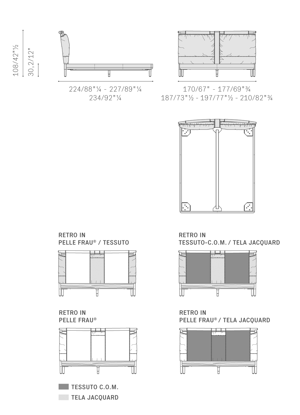 Times床的床頭是皮革、木材之間的迷人嵌合,也可選擇布藝。床頭結構采用白蠟木實木,是線條之間的純粹融合,經過精心設計,以支撐垂直方向的Pelle Frau?皮革條,穿過并分割柔軟寬大的水平軟墊。由此帶來虛實之間的靜謐平衡。Times床也能通過幾個動作自由改變外形。床頭大軟墊也可單獨購買,表面可以覆蓋不同顏色和材料,從Pelle Frau?皮革和布藝中進行選擇。內部填充聚氨酯泡沫和聚酯棉。Times床腳板采用楊木復合板,床欄采用杉木條,全部略微填充聚氨酯泡沫,表面覆蓋Pelle Frau?皮革。支腳使用雞翅木色白蠟木實木。