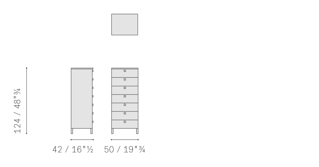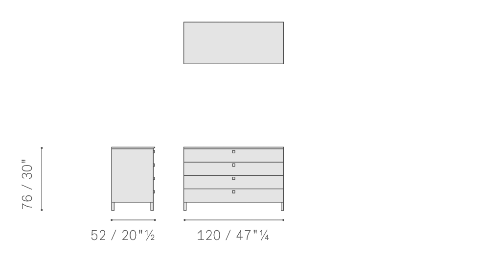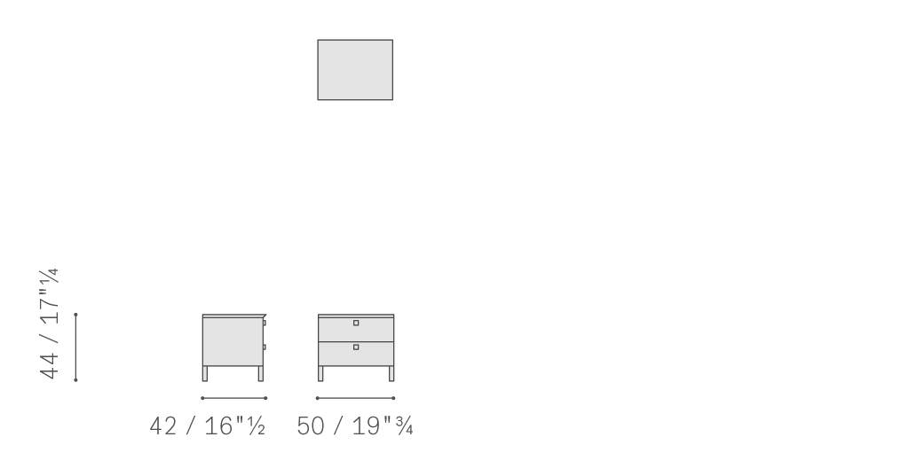 Più Notte床頭柜、抽屜柜和七斗小柜的結構使用中密度纖維板,內倉漆繪,使用細膩顆粒防劃漆料。支腳和手柄使用拋光表面處理、槍管色或噴漆鋁。抽屜安裝在緩沖閉合金屬導軌上,也使用中密度纖維板,噴涂細膩顆粒防劃漆料。覆蓋皮革或Pelle Frau?軟皮的部分因對比色四周縫合線而愈顯珍貴。
