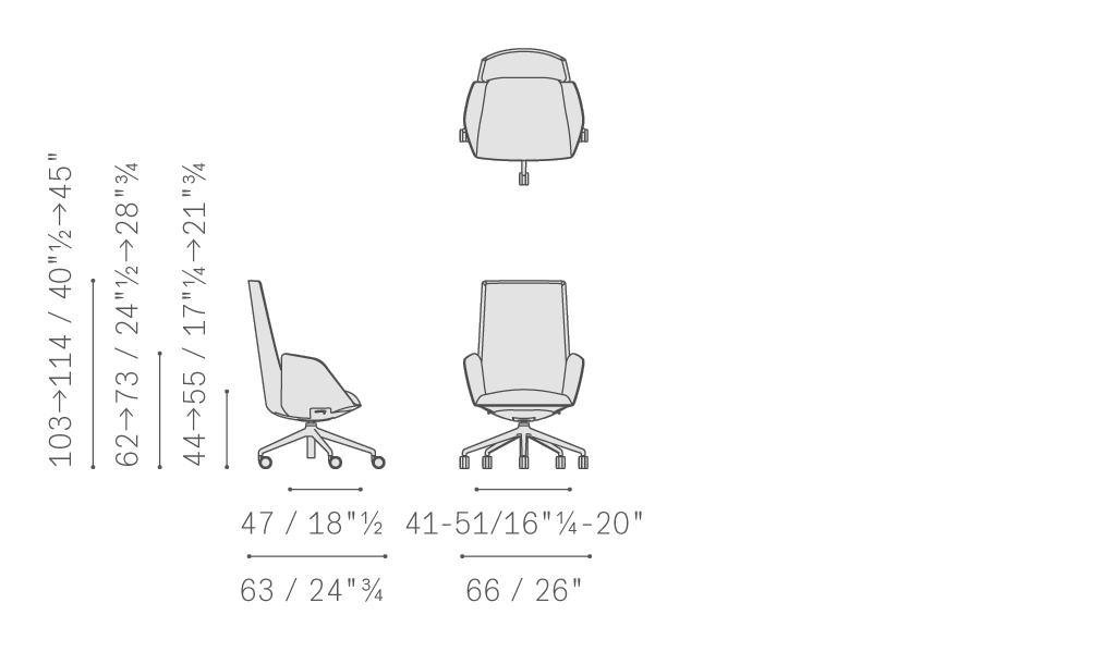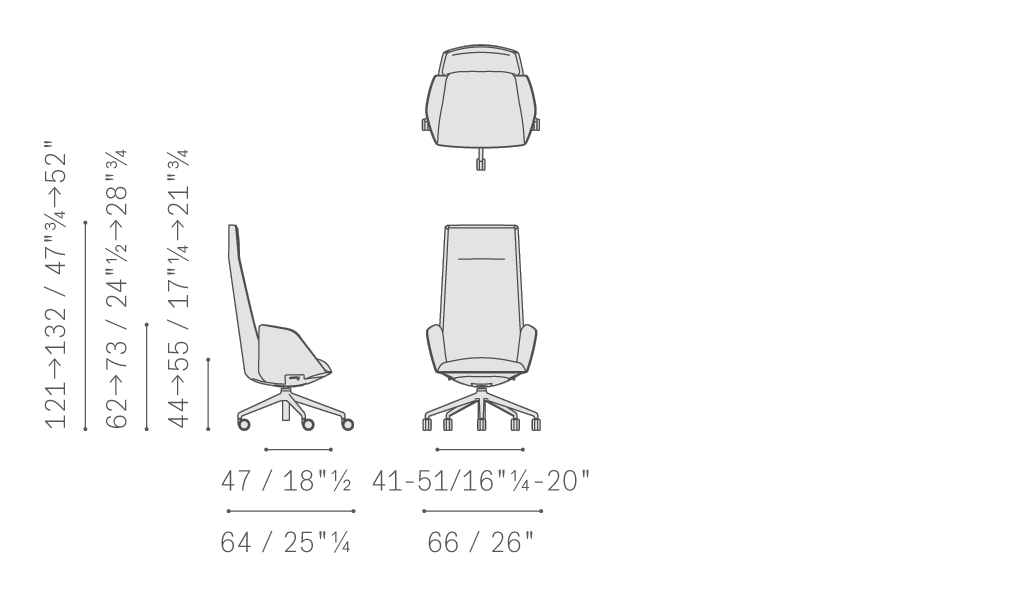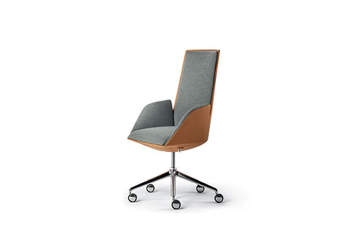 Cercle辦公室靠背椅中,對人體力學(xué)的研究尤為深入。同步機(jī)械裝置與整體骨架相結(jié)合,經(jīng)過Poltrona Frau的進(jìn)一步優(yōu)化,能夠帶來絕佳的舒適性能。結(jié)構(gòu)采用聚氨酯,配金屬內(nèi)芯。內(nèi)部填充具有不同密度的聚氨酯泡沫,為不同區(qū)域帶來更高舒適度,同時(shí)絎縫聚酯棉。五支腳底座采用拋光鋁或黑色噴漆鋁,通過連接支桿與底盤相連,支桿中裝備空氣彈簧,根據(jù)底座所用表面處理進(jìn)行噴漆。支撐點(diǎn)為“W”型軟質(zhì)或硬質(zhì)自鎖輪。表面覆蓋Cuoio Saddle Executive鞣制皮革和Pelle Frau?皮革,完全沒有縫線,彰顯座椅的外形美感。Cercle也可以完全覆蓋Pelle Frau?皮革,或者進(jìn)行搭配,在骨架上覆蓋皮革或鞣制皮革,內(nèi)表面覆蓋皮革或布藝。