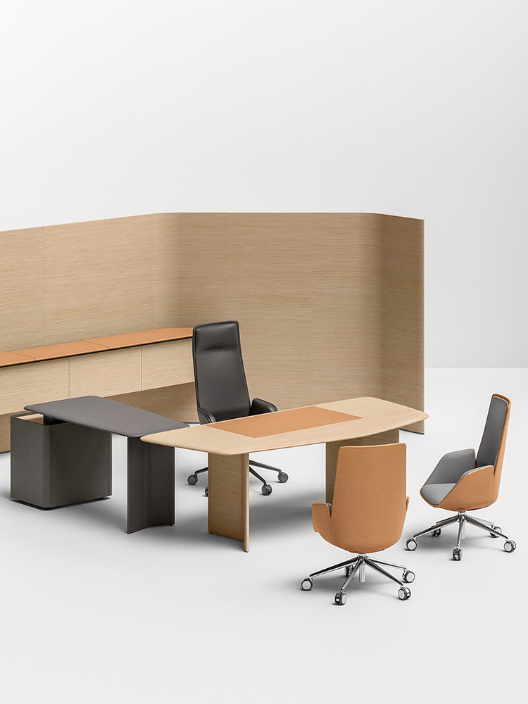 事實(shí)上,Cercle在加泰羅尼亞文中的含義是“互相對話的人組成的圈子”。Lievore、Altherr、Park的設(shè)計(jì)項(xiàng)目與Poltrona Frau的總裁辦公室新理念完美契合:其外形與品類以增進(jìn)關(guān)系為主旨,設(shè)計(jì)目的在于激勵(lì)一種更加適應(yīng)開放空間中當(dāng)代經(jīng)理人的工作方式,即分享理念并將自己的創(chuàng)造能力與他人結(jié)合。