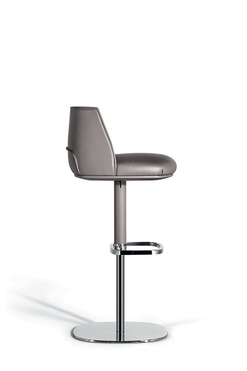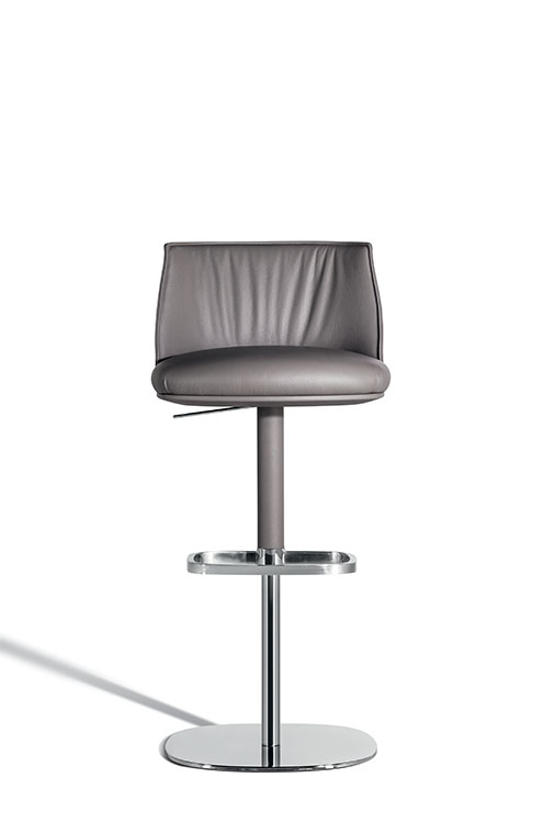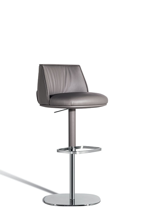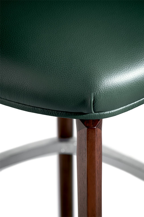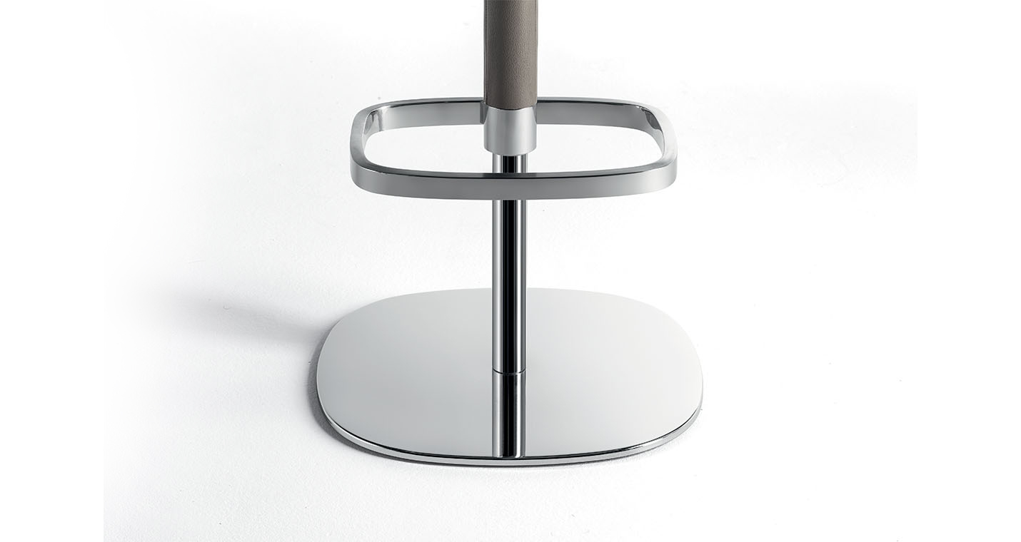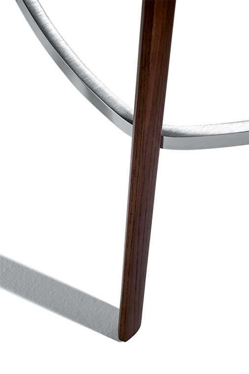Archibald Stool板凳配有四條椅腿的木制底座,可以選擇兩種不同高度,也可使用經(jīng)典的金屬桿底座。第一種選擇採用摩卡色或雞翅木色表面處理白蠟?zāi)緦嵞荆瑝|腳板使用矩形截面不銹鋼,上表面單向拉絲處理,其它三面鏡面拋光處理。金屬底座版本中,鋼制支桿可以旋轉(zhuǎn),并通過緩衝空氣彈簧調(diào)節(jié)高度,由位于座板下方右側(cè)的不銹鋼壓桿控制。矩形截面不銹鋼墊腳板從內(nèi)向外逐漸變薄。地面支撐板也採用鋼材製作。除墊腳板上表面採用單向拉絲處理以外,所有外露鋼制表面均採用鏡面拋光處理。
