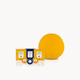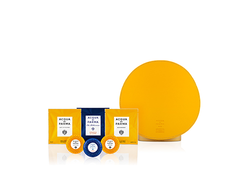 香氛罩有黃色、深灰色和棕色可選,這些顏色專為與灰色的內部主體和諧搭配而設計。在圓盤中央燙印有""Acqua di Parma meets Poltrona Frau""徽標。套件中所帶的入門套裝包括三種香氛:Milano(米蘭)、Buongiorno(早晨好)和Luce di Colonia(晶瑩花露)。