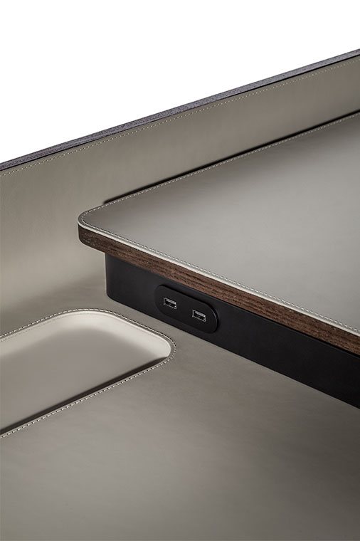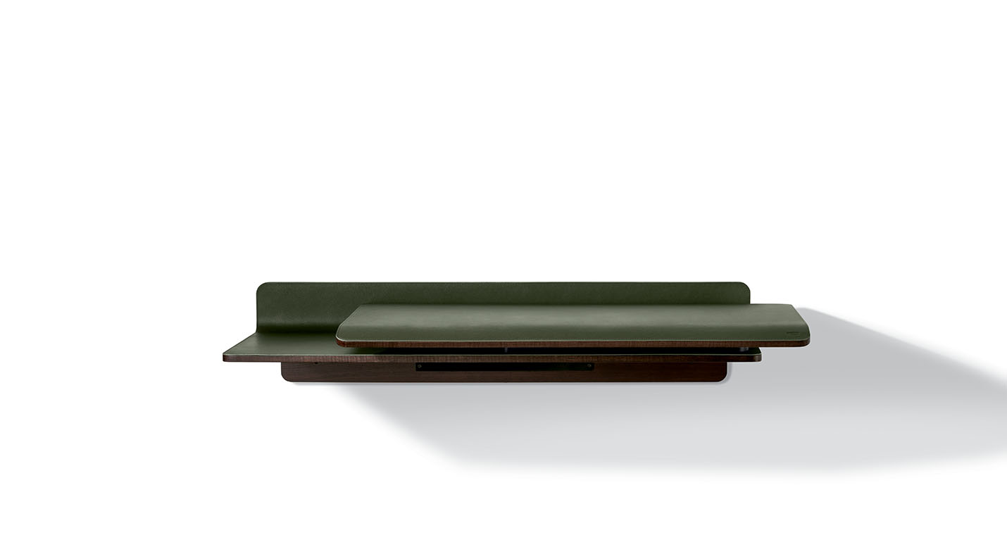在日本書法界,點、線、字之間存在一種無形但有意識的連續性,被稱為“iren”(意連)。姿態間的這些連續性意味著,儘管似乎彼此分離,但彼此間卻完美和諧。即使在我們這個由技術主導的時代,Iren寫字臺的精髓不僅在于對美感和精簡的追求,更是為了恢復自然而和諧的姿態:這款寫字臺為工作中的新場景與新習慣賦予生命,符合身體與物品之間的自然流暢關係。設計師大城健作將Iren寫字臺想像成一個小型家用工作臺,能夠輕鬆適應現代生活方式。只需簡單操作,便可讓兩個重疊檯面中的一個在另一個之上滑動,從而帶來新的工作和容納空間。電子連接毫不影響寫字臺的美觀:充電和USB插座位于黑色金屬盒中,盒上是上層檯面,表面由優雅的軟皮或硬皮覆蓋。上層隔層板略微傾斜,帶來更加柔和的感覺,并能夠為前臂提供更好的支撐。對于壁掛式,可在背面安裝LED照明燈,以便在環境光線不足時也能更好使用寫字臺。