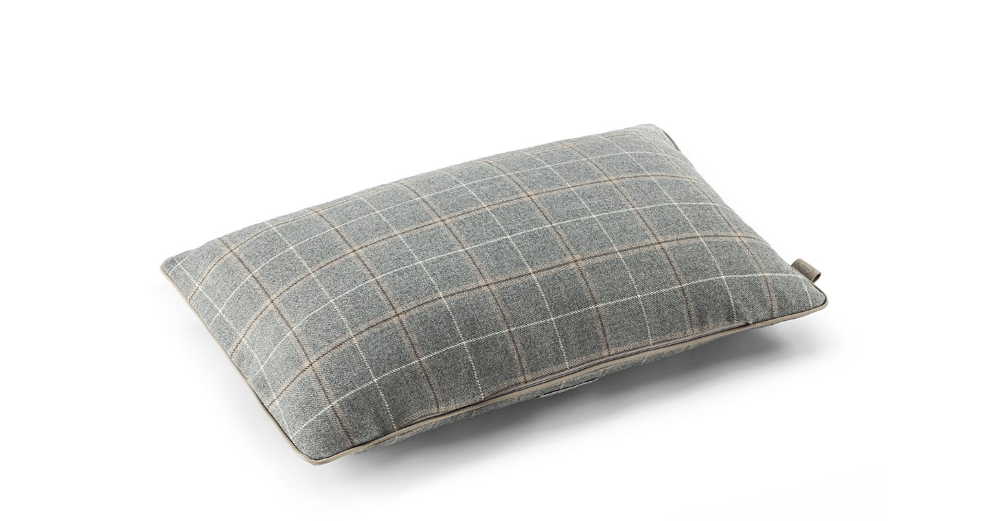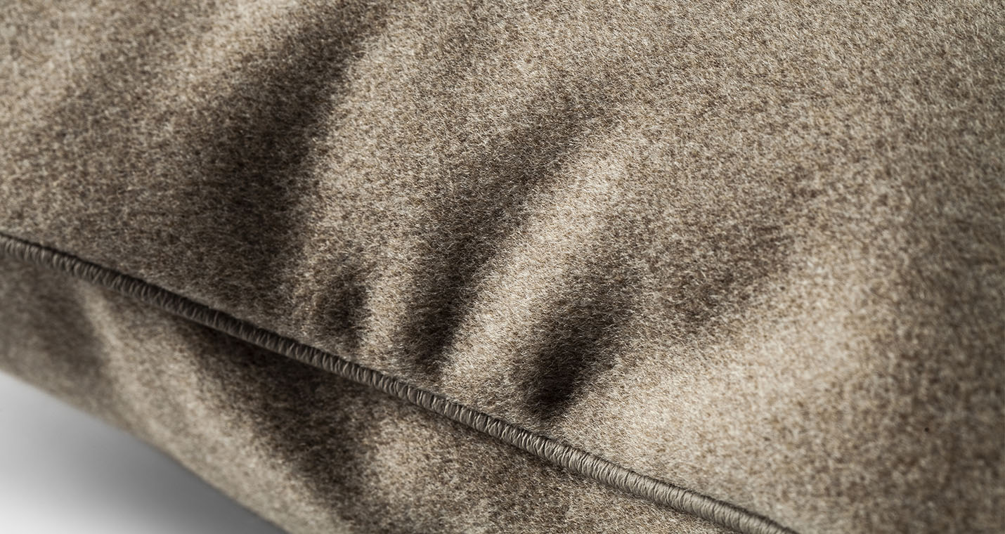Loro Piana Interiors裝飾軟墊採用Altai和Zelander? Check面料包覆。}Altai是一種羊毛和羊絨的精製混紡面料,將兩種纖維的特性完美融合。一方面,極為細膩的羊絨具有非凡的柔軟性,另一方面,精心挑選的僅產自澳大利亞和紐西蘭的美利奴羊毛,則具有出色的強韌性和保暖性。在經典的Check設計中,Zelander?採用優質紐西蘭美利奴羊毛加工而成,具有出色的光澤和強韌性。其低調的優雅氣息為軟墊賦予豐富的精美感。如同所有羊毛,自然具有阻燃性。