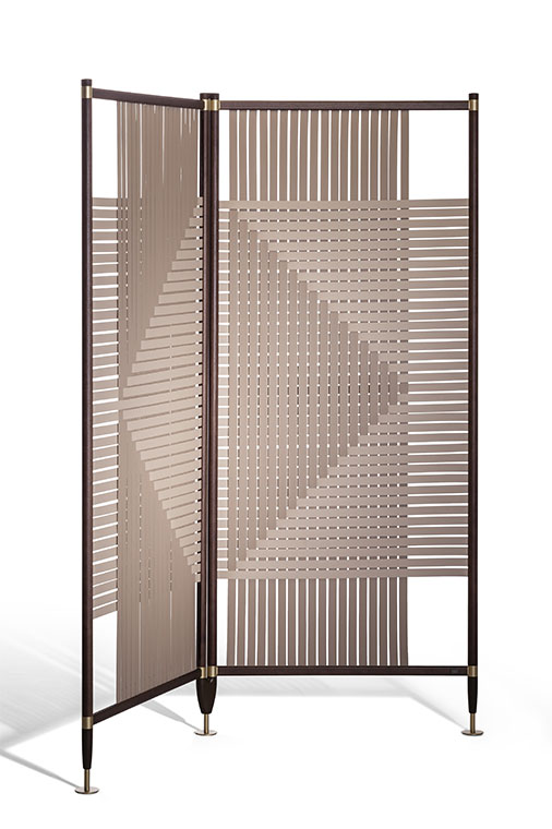 順應(yīng)各種需求,以優(yōu)雅、輕巧、內(nèi)斂的方式重新設(shè)計(jì)心中所愿的角落。這就是Plot模組化屏風(fēng)。Plot屏風(fēng)由GamFratesi設(shè)計(jì),Poltrona Frau生產(chǎn),精簡(jiǎn)設(shè)計(jì)令其獨(dú)具特色,不僅可用于分隔住宅空間,保證更強(qiáng)的私密性,同時(shí)還具有裝飾環(huán)境的作用。使用軟皮編織創(chuàng)造出的各種幾何圖案是本品的象徵性元素。在Round(圓形)面板中,編織成的圓形發(fā)展為各種組合;而在Square(方形)面板中,再次呈現(xiàn)的幾何形狀為方形。