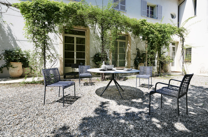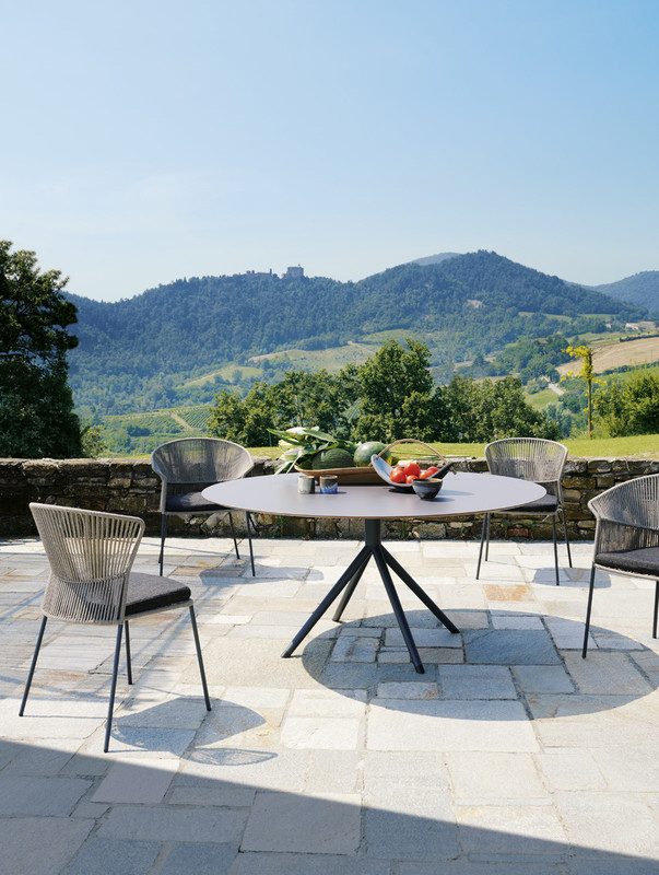 Versatile and with an essential design, the OTX table with central leg and four feet, is declined in the dining version ?128 e ?158cm, with painted metal base and HPL top in the finishes as per collection.