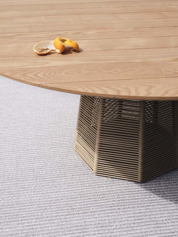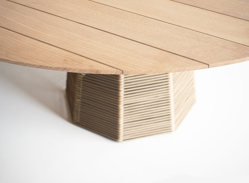 The Sophie outdoor table consists of an octagonal base in epoxy powder coated steel covered in hemp or Red Grape nautical rope.