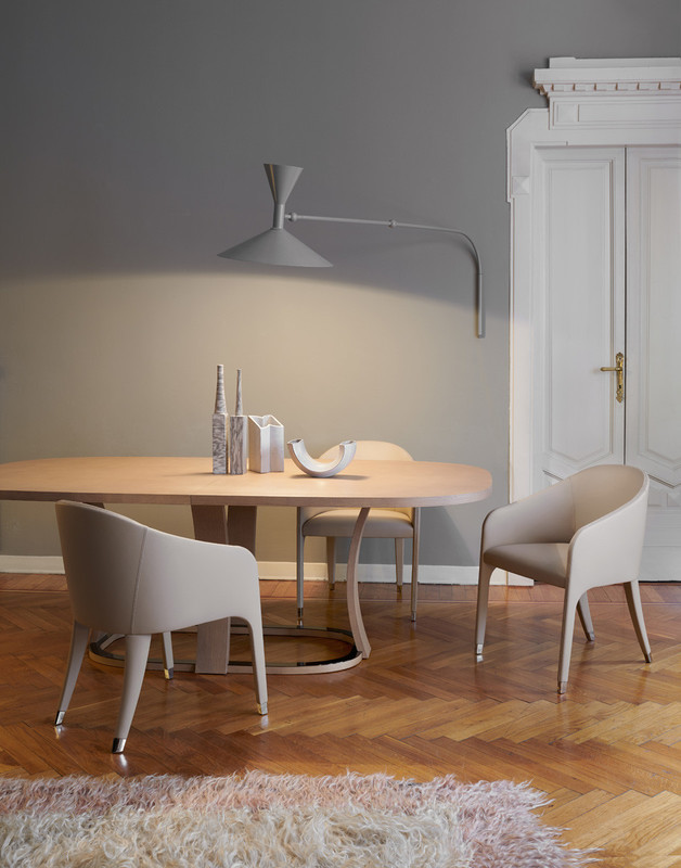 Also available in the version with a circular top, the Grace table stands out for the supple design of the legs that harmoniously join the circular base.