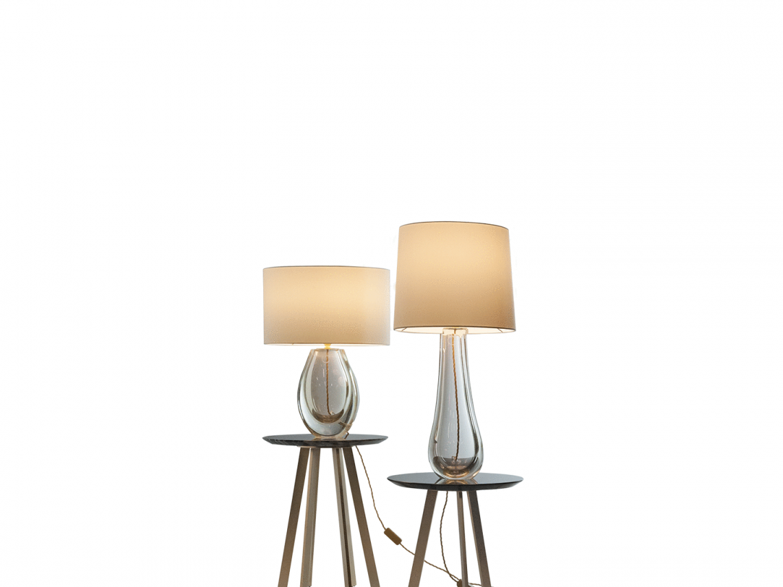 Hugo, più compatta, ha una forma piena e morbida ed un cappello cilindrico, mentre Colette è slanciata e leggermente più alta, con un paralume rastremato.