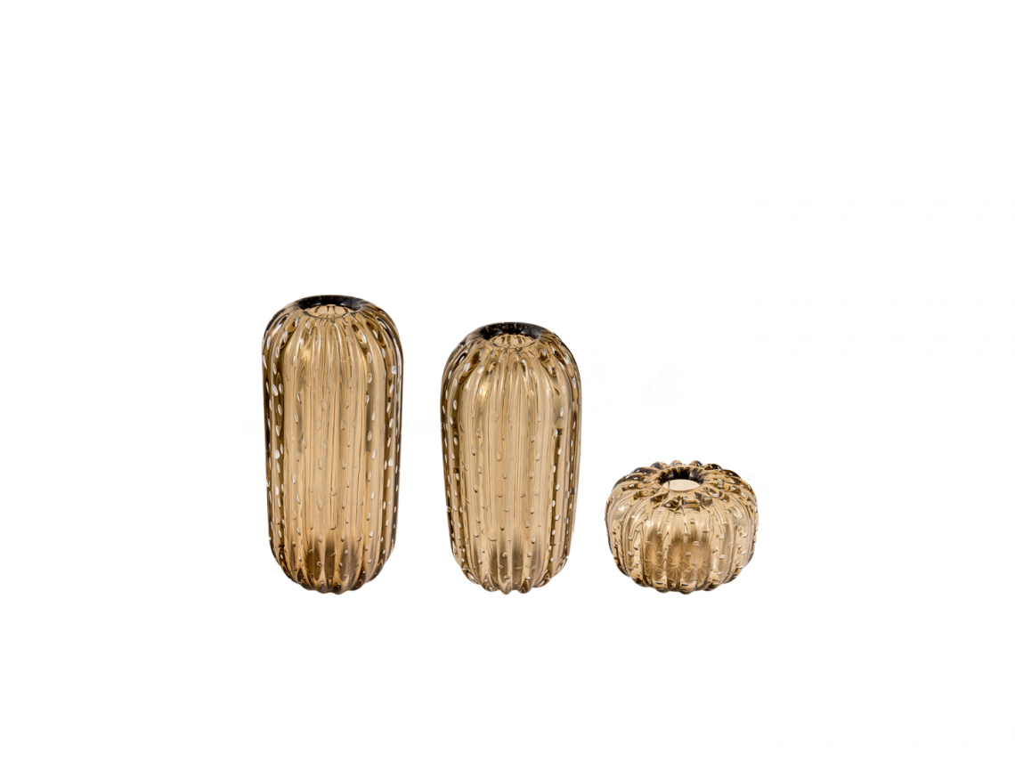 L’attuale risultato di questa preziosa collaborazione, sempre tesa a coniugare saperi antichi ed estetica contemporanea, è un’inedita sperimentazione di forme e cromie pastello, trasparenti o opaline.