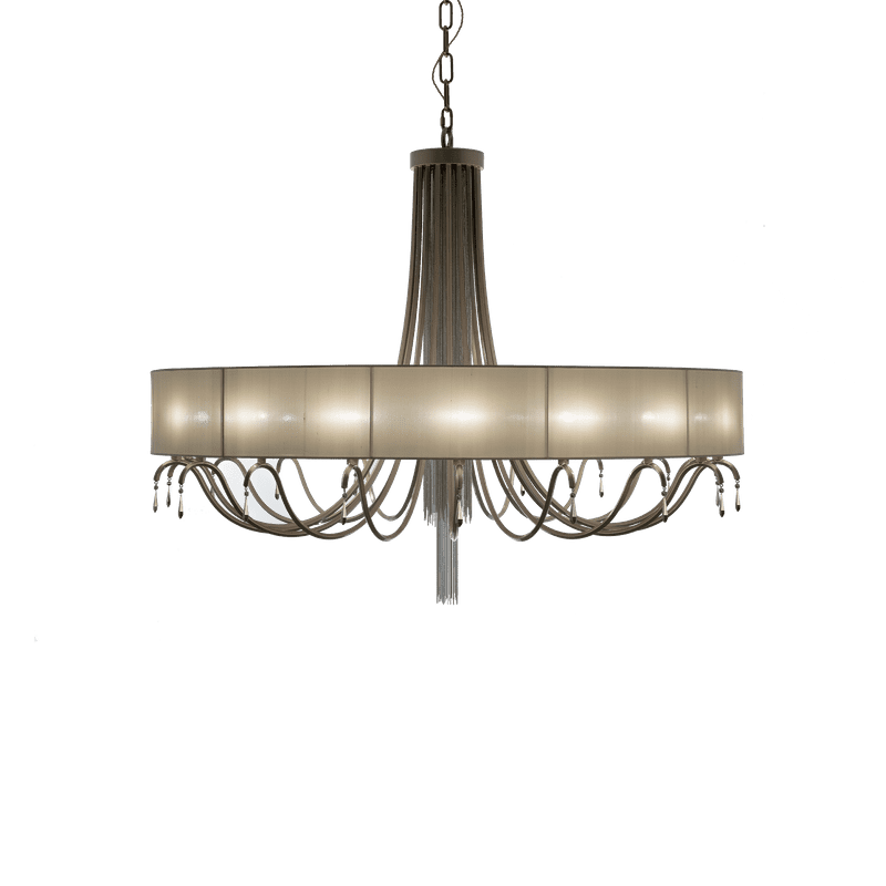 In this collection there is something that reminds of the Far East, its grace, its elegance. Maybe, it could be the big circular lampshades, created in precious fabrics or the bending, ornamental chains, or maybe the pending, charming gems. Strong and delicate at the same time.